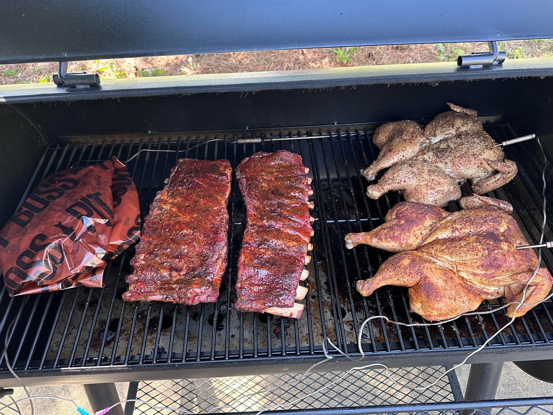 Smoked some ribs and two whole chickens in the longhorn offset smoker.