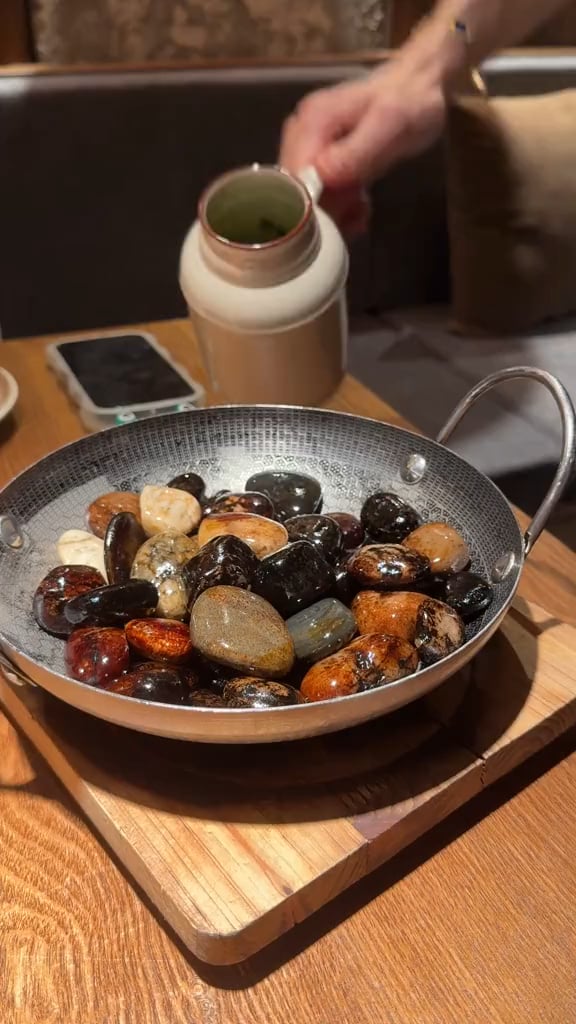 I wanna see how they serve it, do they pick the egg chunks off each rock and place it on everyone’s plate? What does the dishwasher think of this meal? And how much does this cost? Do they just boil stones all day in the kitchen