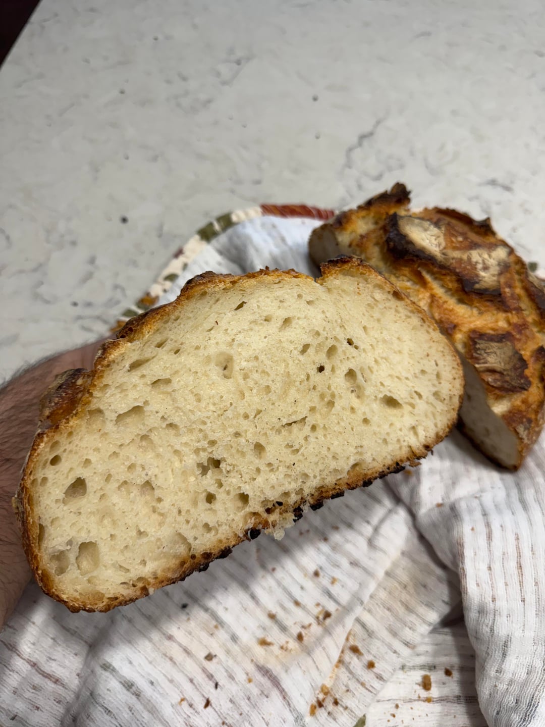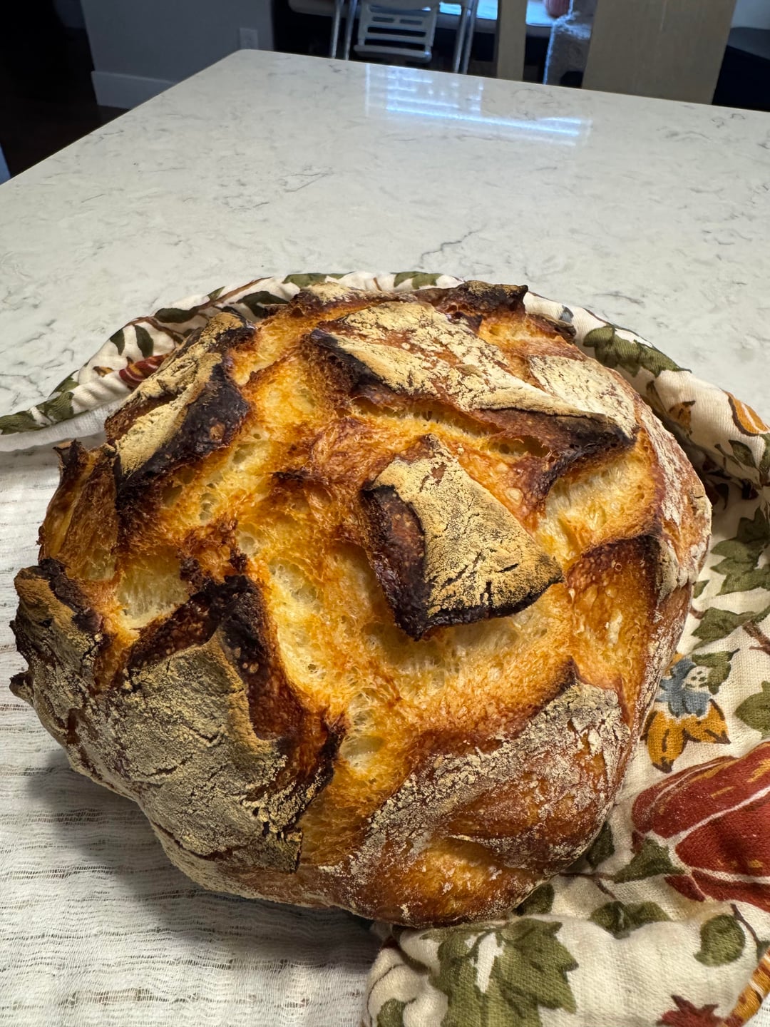 Rusty_924 5 months ago thats excellent for first attempt. heck it’s decent overall.the crumb looks great, so you probably proofed it right. I also like the dark crust. Good job OP!My first definitely did NOT look this good.
