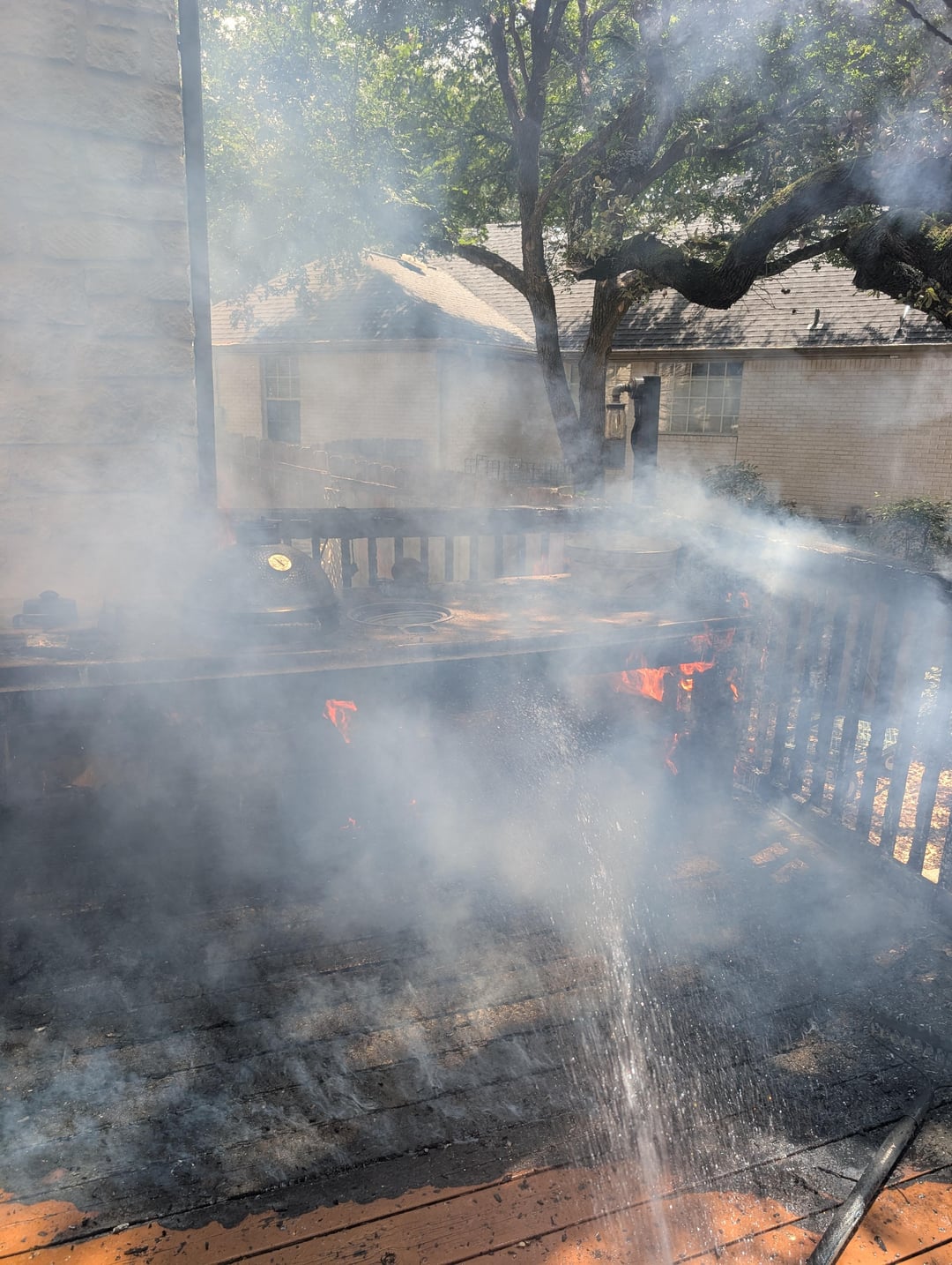 I like how you stopped to take a picture *while you were spraying water from the hose*, with a blazing fire on your deck threatening to destroy your house. That’s true dedication to entertaining everyone on Reddit. Kudos.