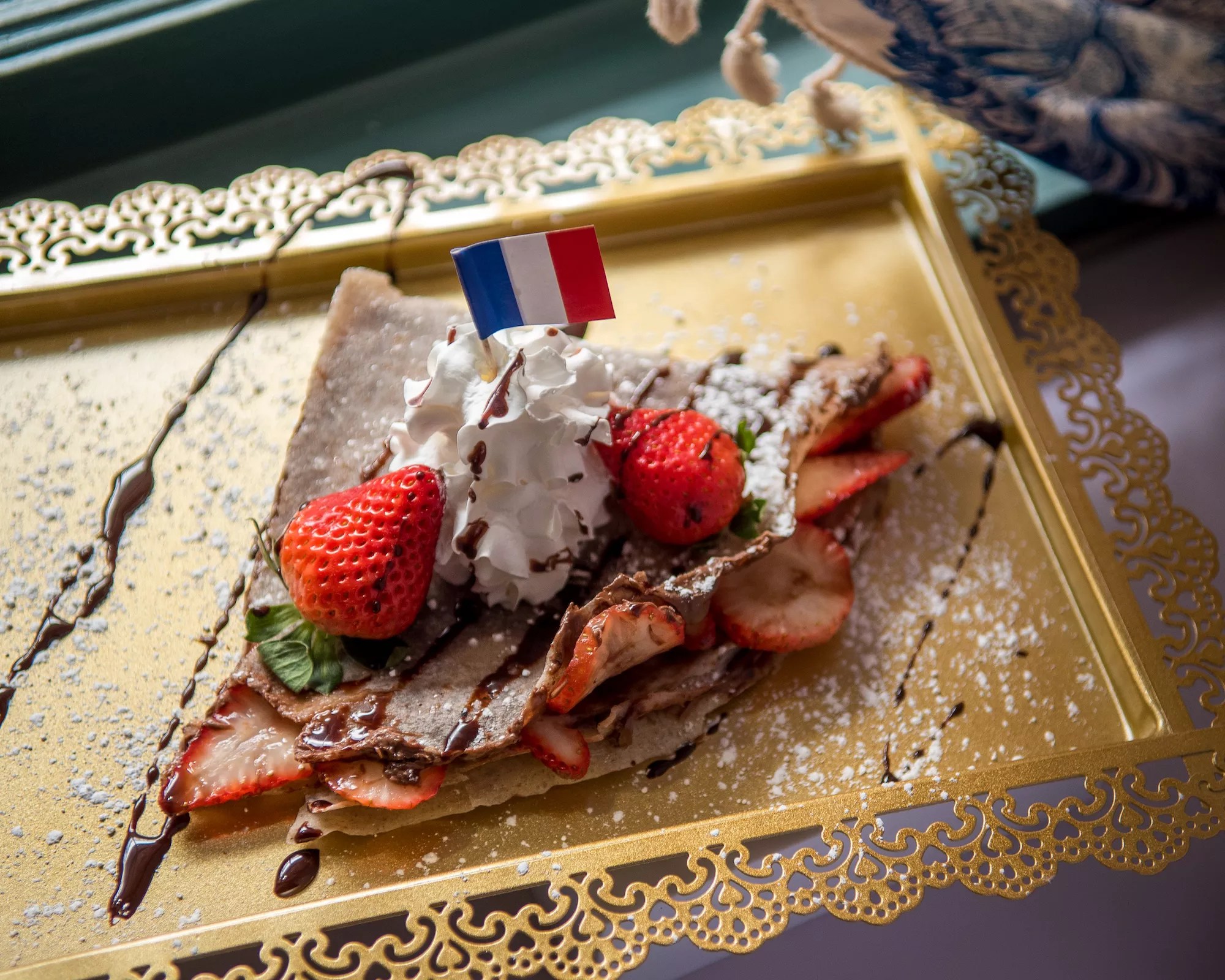 The ambiance is “Instagram-worthy,” said general manager Amaya Jimenez. Playful and immersive decor transforms the space into a charming Parisian streetscape with facades depicting a creperie, a chocolatier, a lush French garden and a cozy library. A thoughtfully designed children’s corner with toys that reflect these businesses ensures that every member of the family, no matter the age, can take part in the experience.
