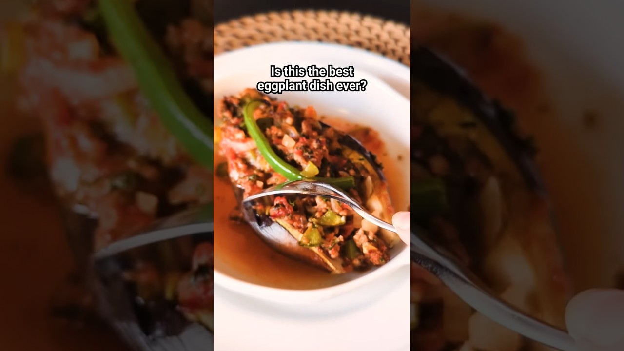 Is this the best eggplant dish ever? Better than a restaurant. Come make Turkish stuffed eggplants with us. Peel strips of each eggplant, slice and fry until softened. Next, cook the beef mince in its own juices until the liquid evaporates. Now add oil, onion, garlic and capsicum and cook until soft. Then add your chopped tomatoes and cook for five more minutes. Stir in the parsley, chili flakes, sweet paprika, cumin cinnamon, and a good crack of salt and pepper. Stuff your eggplants with your beef filling. Bake for 30 minutes and serve hot.