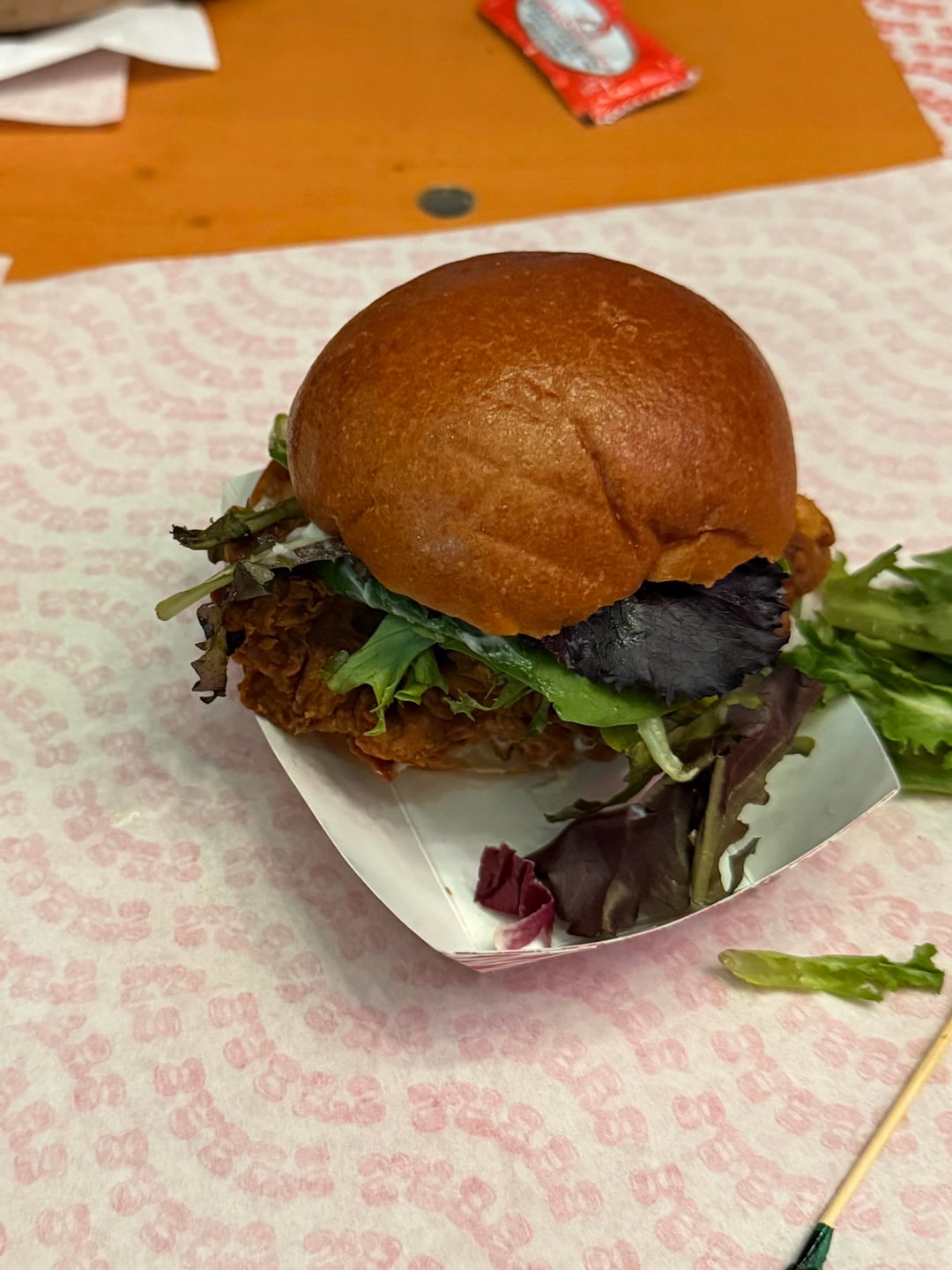 Buttered brioche bun fried chicken thigh and garlic mayo but I wiped as much mayo as I could by Civil-Garbage-5493 2 Comments sunshineturtle1004 2 months ago – Fried chicken thigh (about 150 g cooked, breaded) = 330–360 cal – Brioche bun (about 80 g, buttered) = 240–270 cal – Garlic mayo (about 1/2 tsp) = 10–15 cal – Lettuce (about 15 g) = 3 calEstimated Total: 580–645 calThese are my best estimates, I hope this helps!! MoxGoat 2 months ago 600
