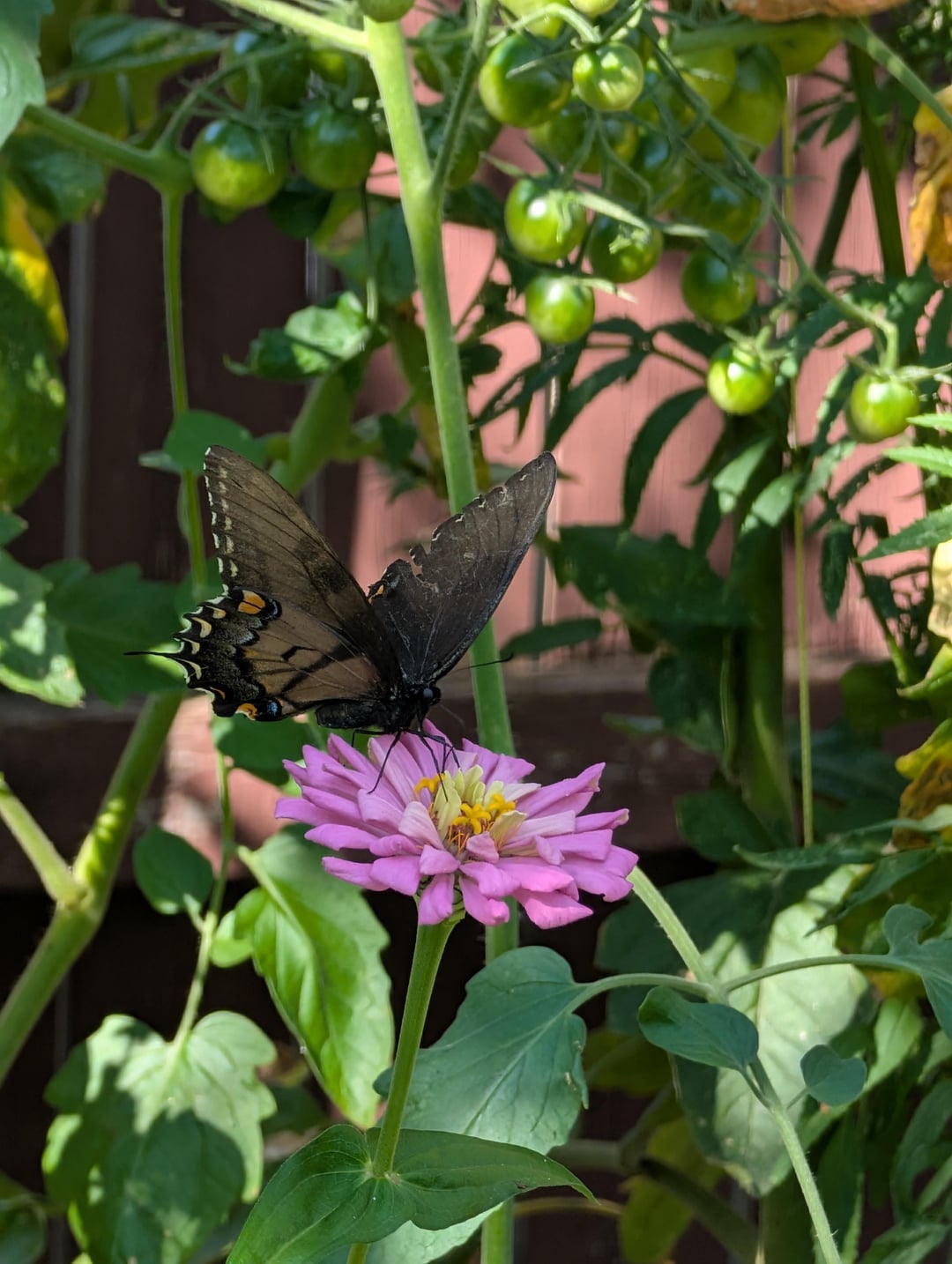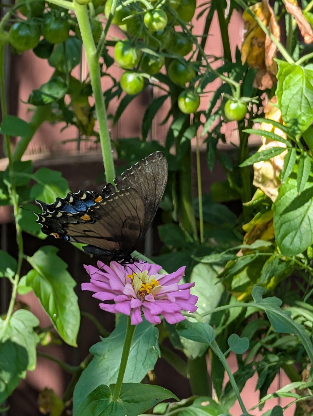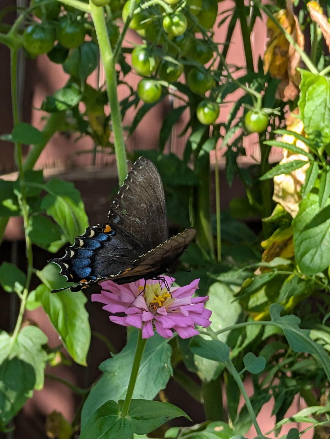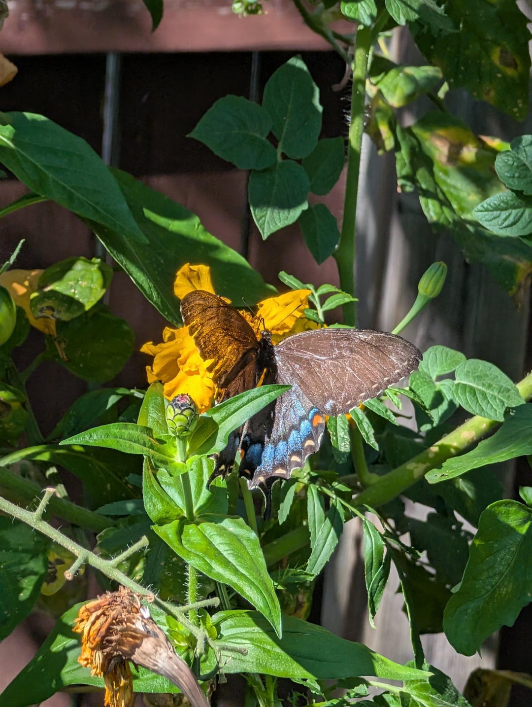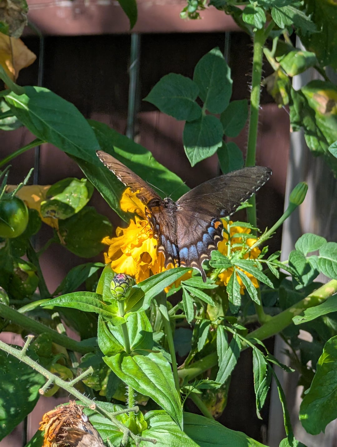 Female(?) Black Swallowtail. Absolutely stunning. The shadow she cast on the ground while flying overhead was awesome. A welcome visit for the experience alone in my book.
