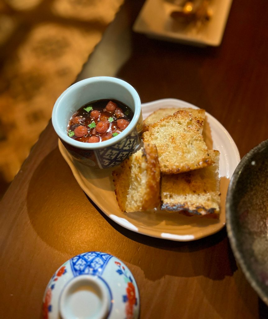 Take the pot de foie gras, for example. With santol confiture on top, it’s a rich starter that gets the umami journey going. The foie gras is thick and decadent, sitting below a layer of tart-sweet santol preserved jam that provides just the right contrast to its richness. Eaten with the buttery, thick bread, it makes for an indulgent beginning.