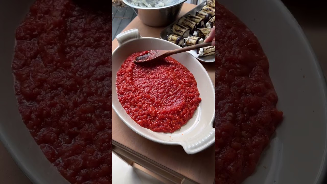 Oberene rolls exist all over the world. There’s involtini in Italy, Nagubiani badani in Georgia. And these baked oagene rolls with feta and mint from my house in London. You start grling slice of oagene until they’re tender. Then stuff them with this lemony feta ricotta mixture. Roll them up and nestle them into a gently spiced tomato sauce. Then top it with a load of mozzarella before baking it. Finish it off with pine nuts and crispy mint leaves for a bit of texture. It’s summer ingredients but utilized in a really comforting way. Make this one next time you’re having a dinner party as part of a bigger spread. It is such a winner.