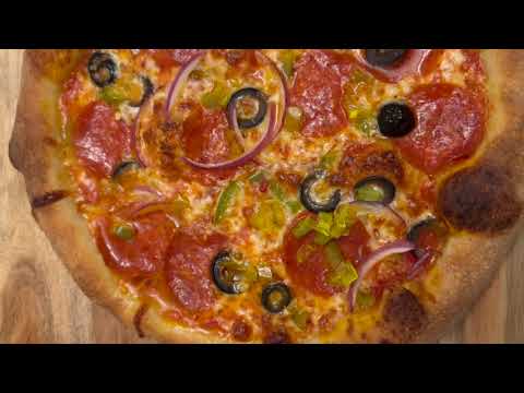 So, here we go. We have our pizza ready to go. We’re going to put a little bit of freshly grated parmesan right on the sauce. Give it a little bit more flavor. We’re going to layer our cheese, freshly grated mozzarella. Sprinkle that on there real nice. Not too heavy. Just enough to cover it. There we go. Now we’re going to add some pepperoni to the pizza. This is just Hormell pepperoni. Nothing fancy. We’re just going for a little bit of an elevated New York. We have some black olives. I’m going to put these on. Again, not too many. Just for a little bit of flavor. Got some green pepper. Put the green pepper on here. Maybe just a little bit more. Get it kind of even throughout the the pizza. Now we got red onion. Just sprinkle a little bit of red onion. There we go. And we have some pepperini. This gives a little bit of a spice, a little bit of heat. I really like using the peppercini now. It just gives the pizza just to overall more flavor. Once we’re done, we’re going to use some basil. We’re going to finish it off with more freshly grated parmesan. So, let’s go ahead and put this in the oven. We’re going to put it in the oven at about uh 510° uh for about 10 minutes. Let’s take a look at the pizza. That looks pretty good. Here we go. Supreme pizza at home. Look at that great color. You have the black olives, green peppers, onions, pepperoni, and peppercinis. Perfect pizza. The bottom’s nice and done. It’s very hot. So like and subscri here. We finish it with a little parmesan, freshly grated parmesan, a little bit of basil. And there you can see it. Thin New York style pizza. Great crust using your home oven.