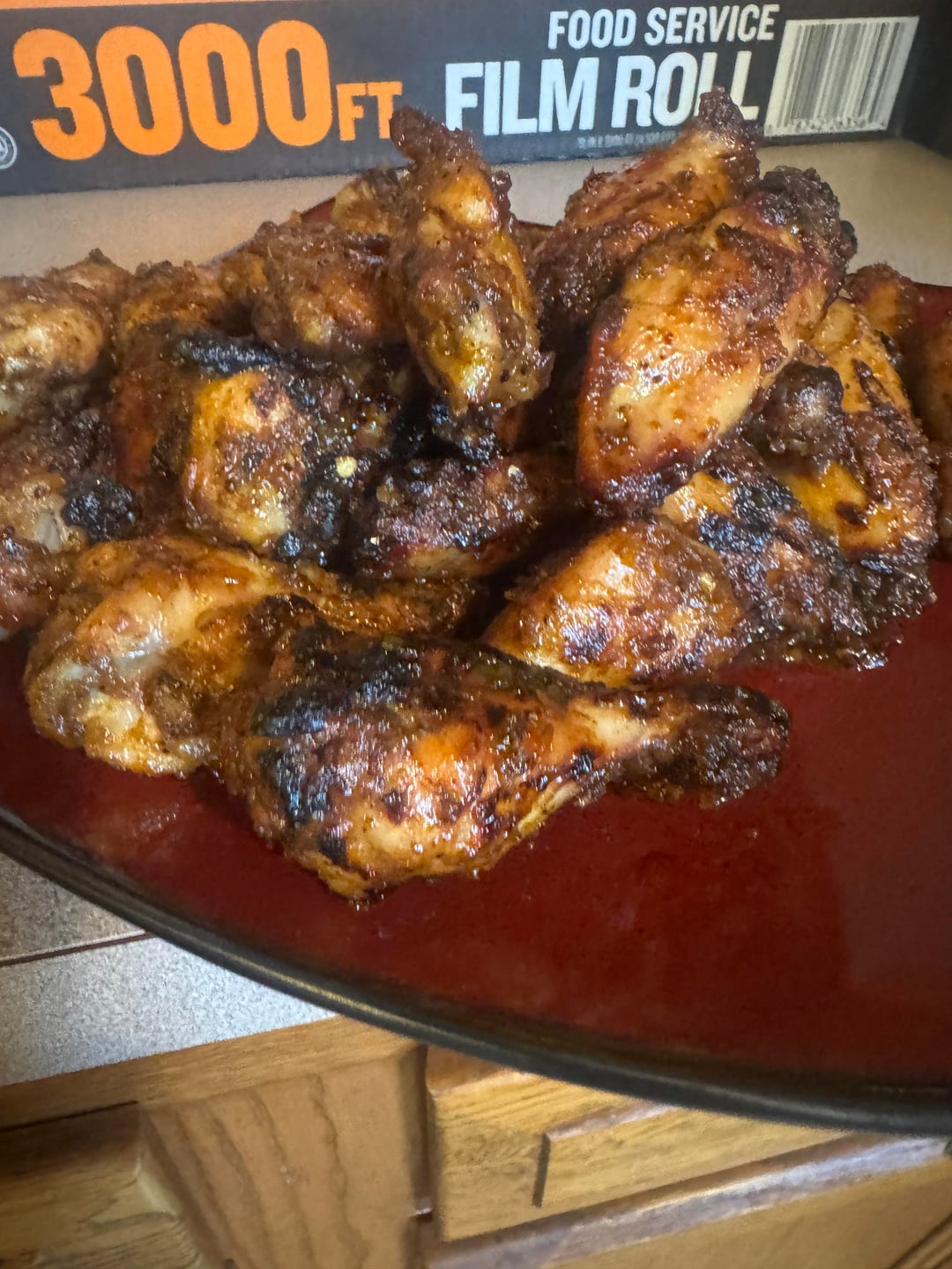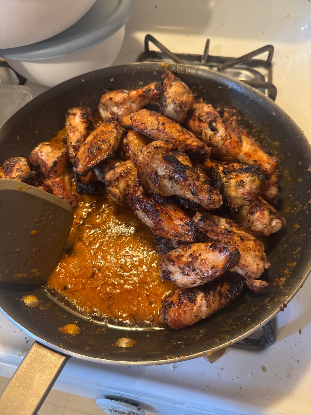 Grilled on my Weber then tossed in a weird sauce concoction of minced caramelized onions and garlic, sriracha, crushed red pepper and black pepper, then a whole lotta butter. A little bit of rice vinegar added for some zing. Couldn’t stop eating em.