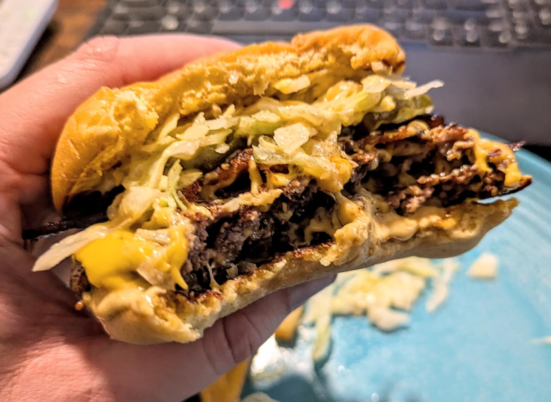 That bacon looks perfect. That’s a great looking cheeseburger.