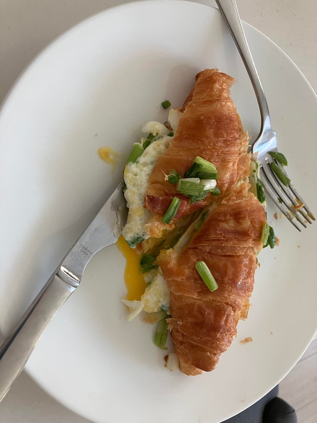 Croissant, egg, jalapeño, green onions. by optimally_slow 1 Comment MagazineDelicious151 4 months ago Looks great.