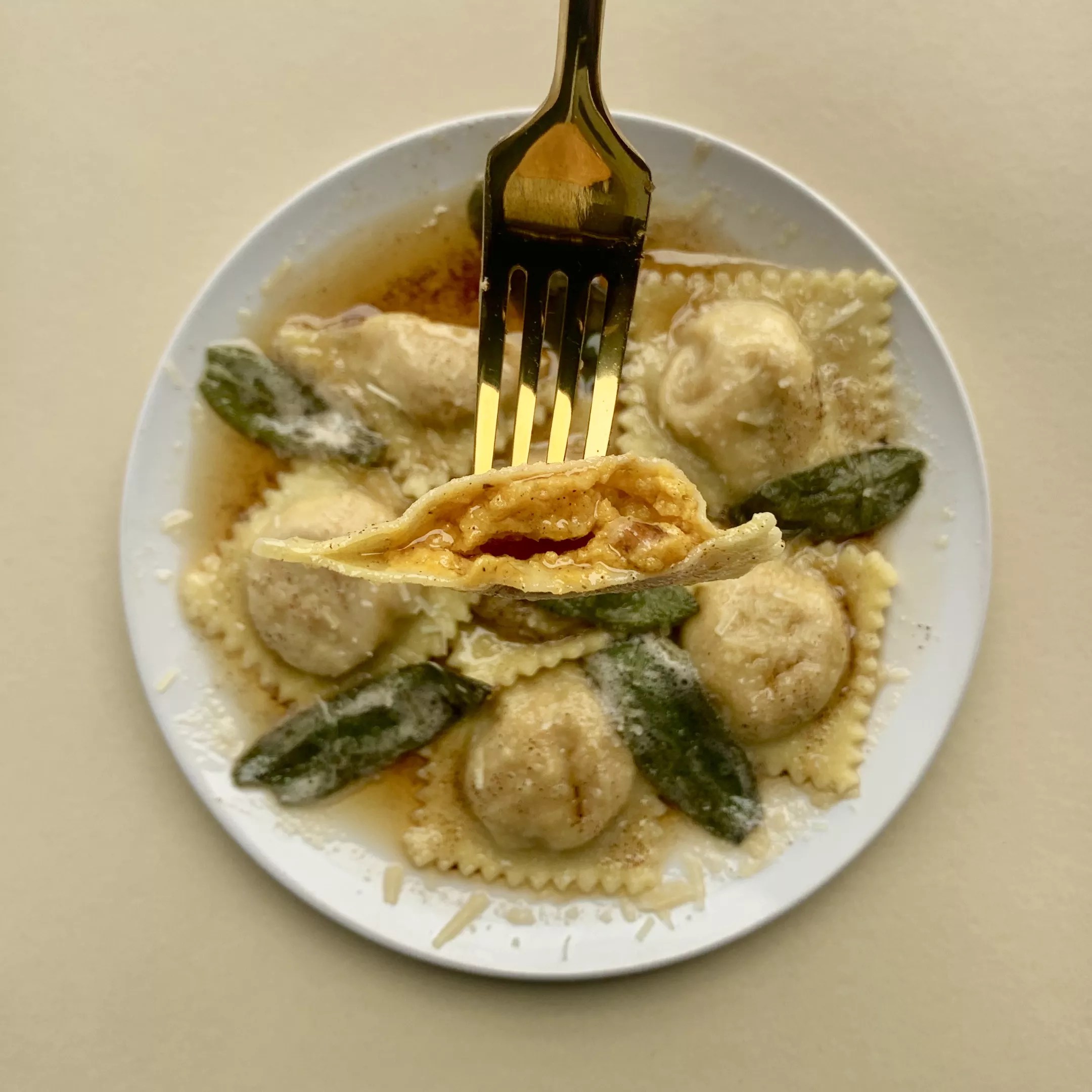 The seasonal butternut squash ravioli pair well with Casa Crobu’s brown butter and sage sauce.