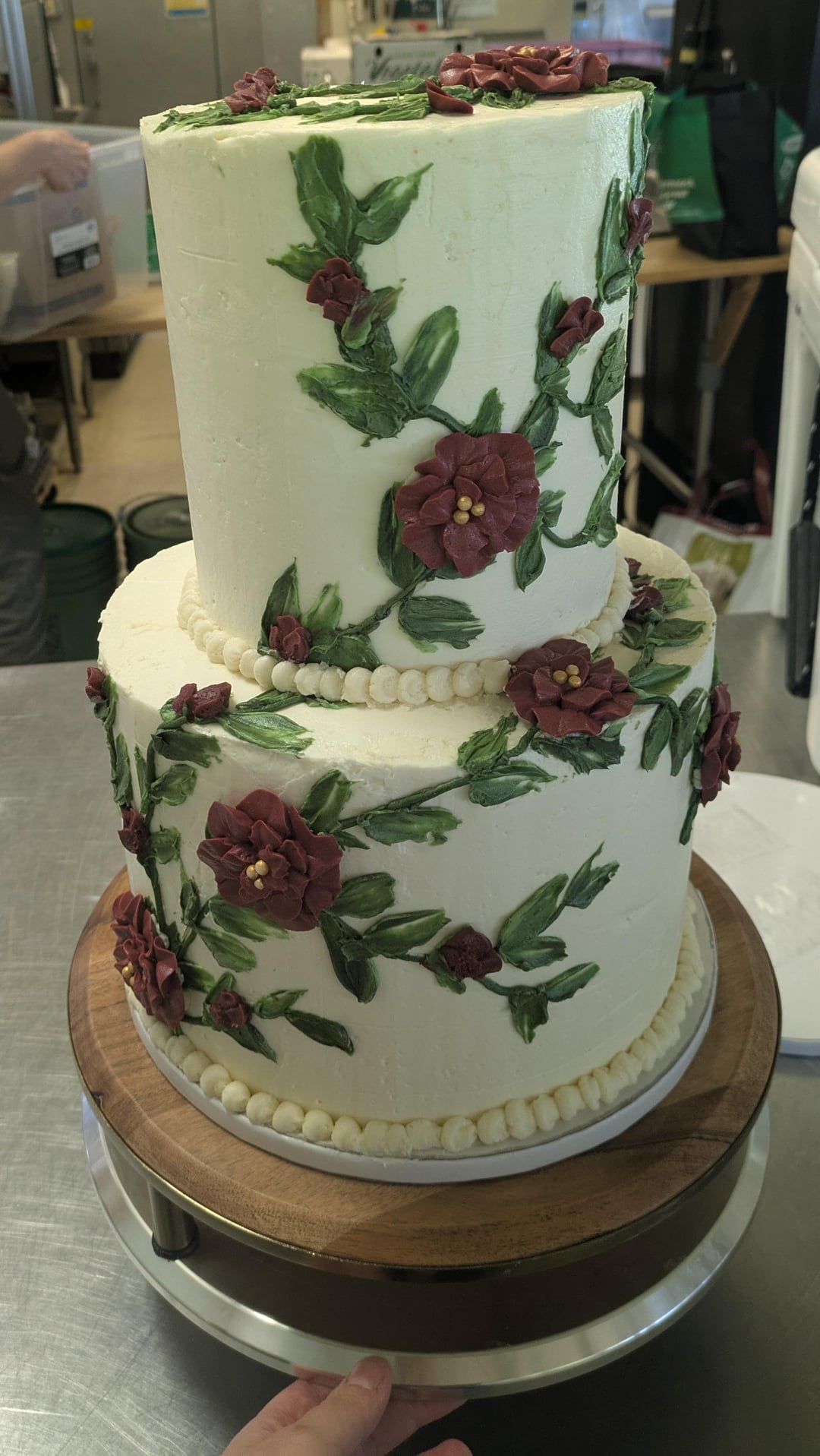 For a coworkers wedding- she has had my baked goods many times and trusted me with her wedding cake. Was honored to do it and glad to finally have a reason to conquer the tiered cake 😅