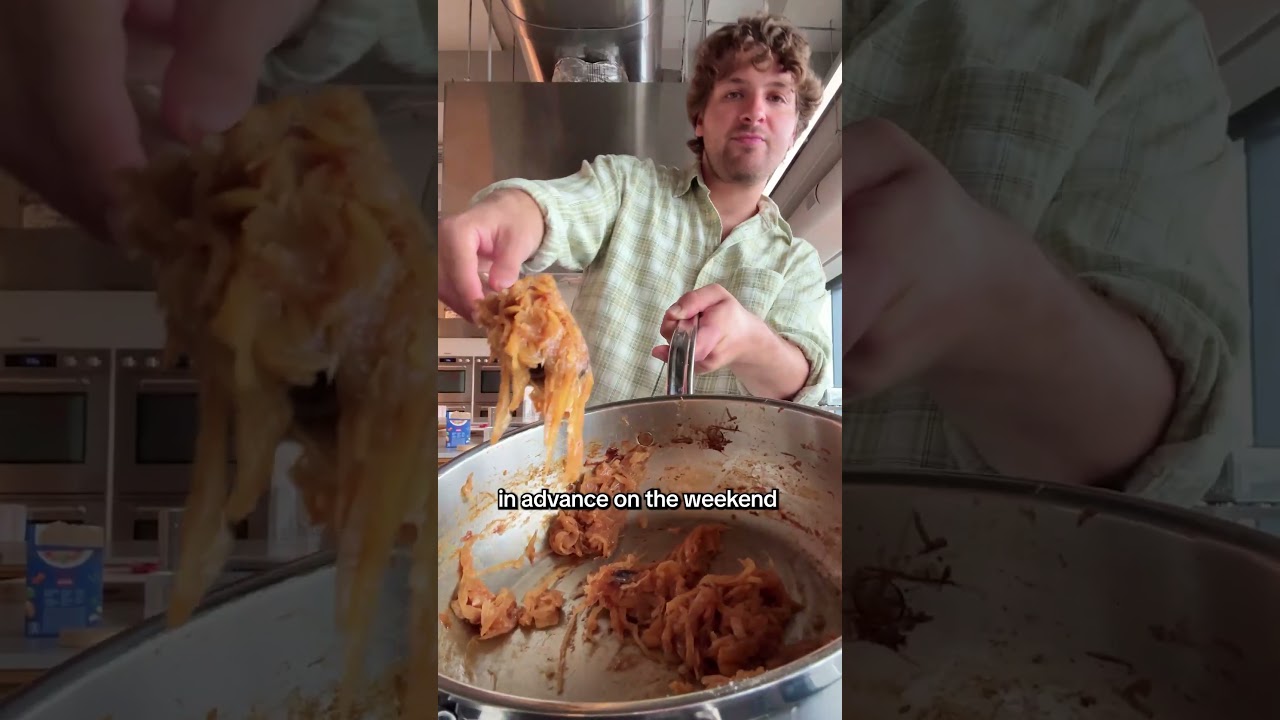 All of the recipes in this week’s forecast are inspired by classic Italian cooking and your favorite crime family dramas in partnership with Direct TV. I’m always watching something while I cook, especially since the My Entertainment Pack gives me access to more than 50 live channels and top streaming apps. It makes me want to cry. I’m going to start by caramelizing some onions. This is something that you can do in advance on the weekend and add to meals throughout the week because this antipasto pasta salad actually comes together pretty quickly. Otherwise, we just boil some orzo, chop up roasted red peppers, sundried tomatoes, and olives. Really great if you have some salami or soada, pushcuto, just some deli meats to chop up and add to this as well. We’ll toss everything together with pesto, some lemon zest, those caramelized onions, and at the end, you’re left with this beautiful pasta salad fit for television. It makes great leftovers. It’s delicious, satisfying. I think you’re going to like it.