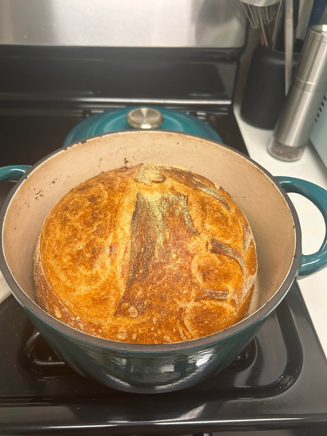 6. Scored and baked at 500F for 20 min with the lid on, then 20 min at 450F with the lid off