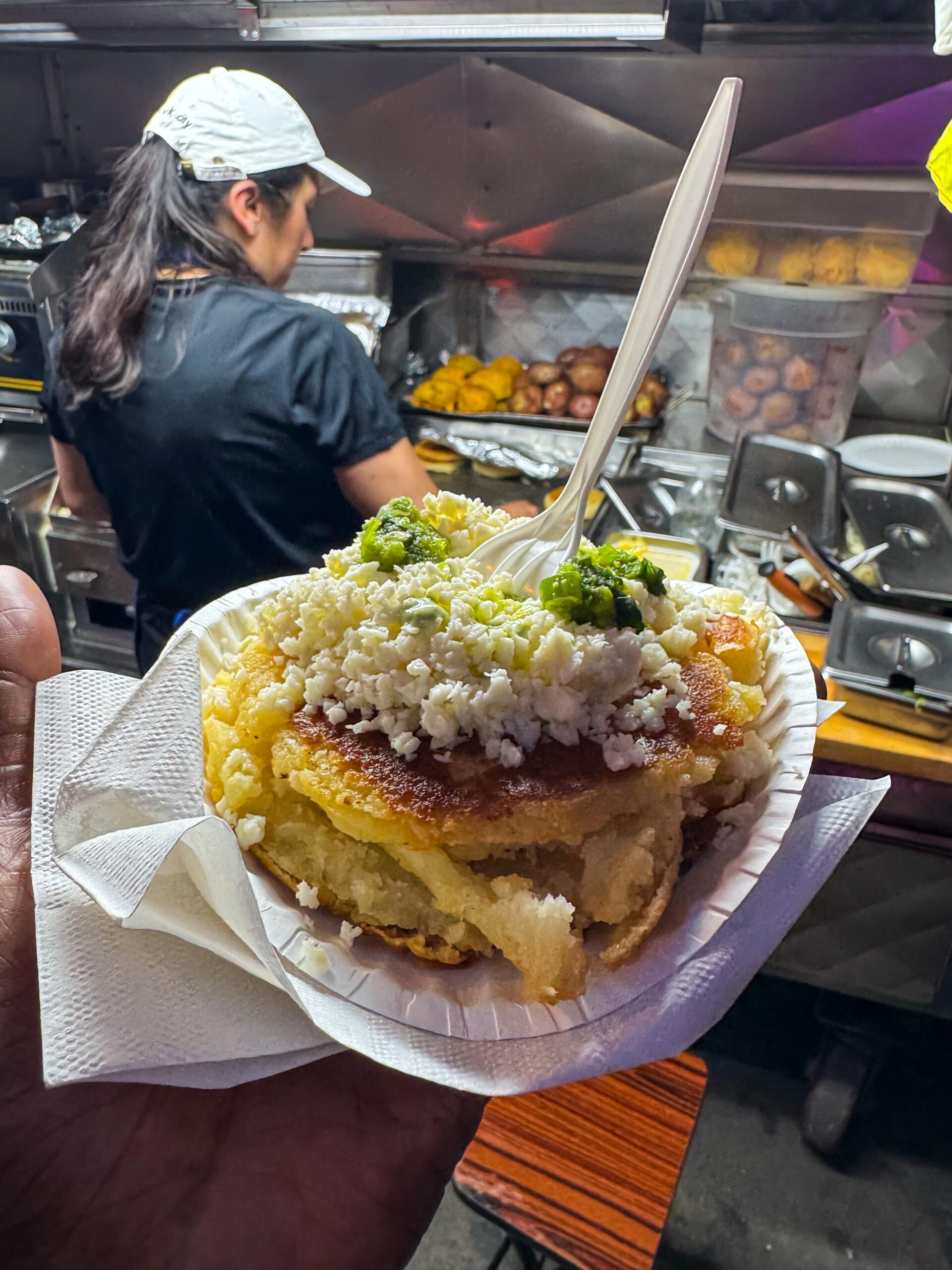 Filled with cheese. Then topped with more cheese and spicy green salsa by RumPunchKid Dining and Cooking