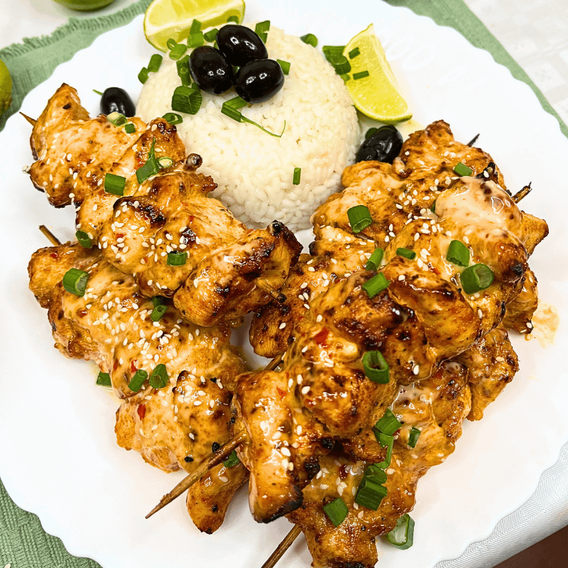 The chicken stays juicy inside, with just the right char on the outside and the bang bang sauce is just amazing. [Here’s the full written recipe](https://cookingfrog.com/bang-bang-chicken-skewers/). Enjoy!