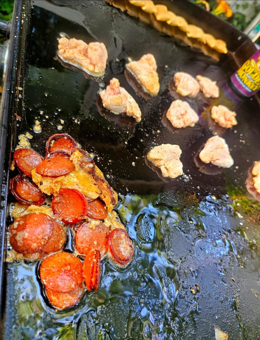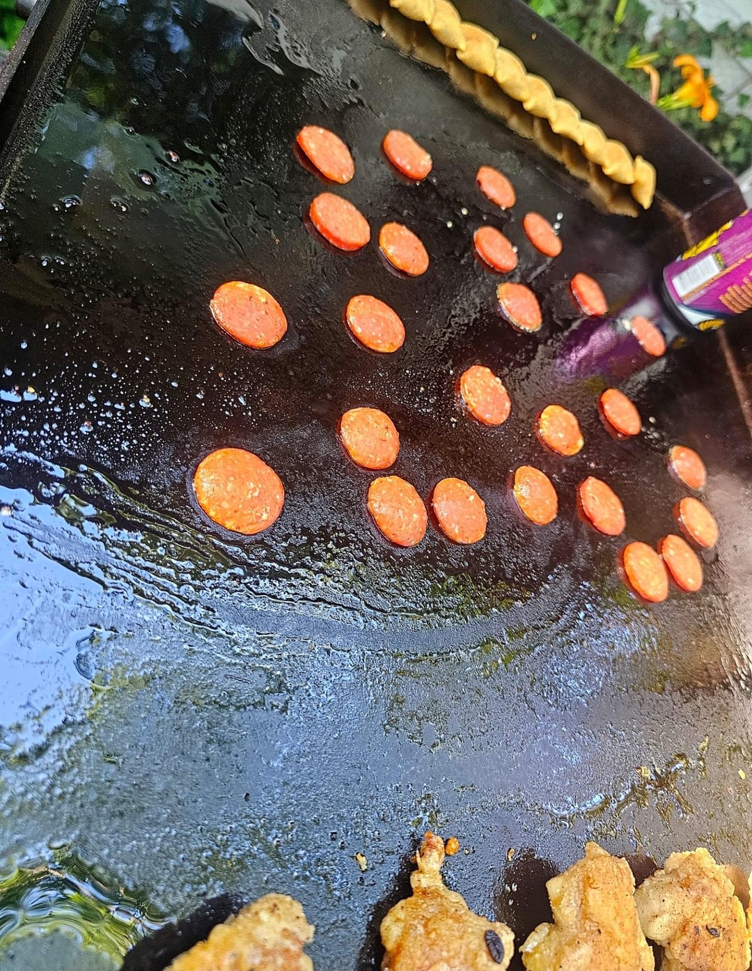 Crisp up some pepperoni, the precut stuff will work but a nice stick sliced by you will work better and get some cupage. Sprinkle with some fresh parm and let it chill in the corner, the grease might get on your pizza rolls and onions but as Martha Snoop Dogg Stewart always says, it's a good thing 😂