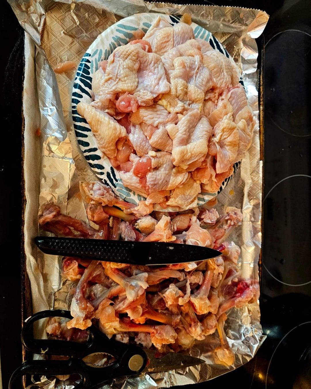 Obviously, you have to start with deboning the wings 😅 a sharp knife and scissors is all you need. It helps if they're cold, not frozen, but very firm, they'll also thaw a little in your hand. Once you get the rhythm down it takes less than a minute. Don't throw the bones away, save them to make stock 😁