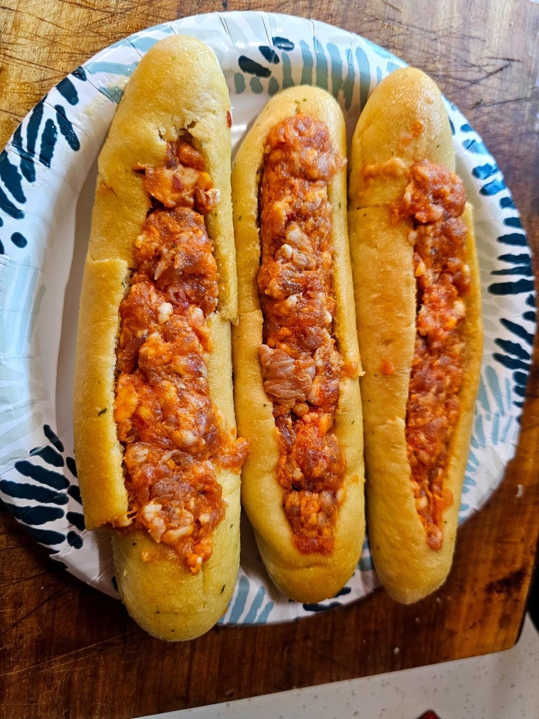 The breadsticks were some store bought garlic ones I found in the back of my freezer and was tired of them taking up space 🤣 thaw, split, spread, and stuff with some hot italian sausage 😅