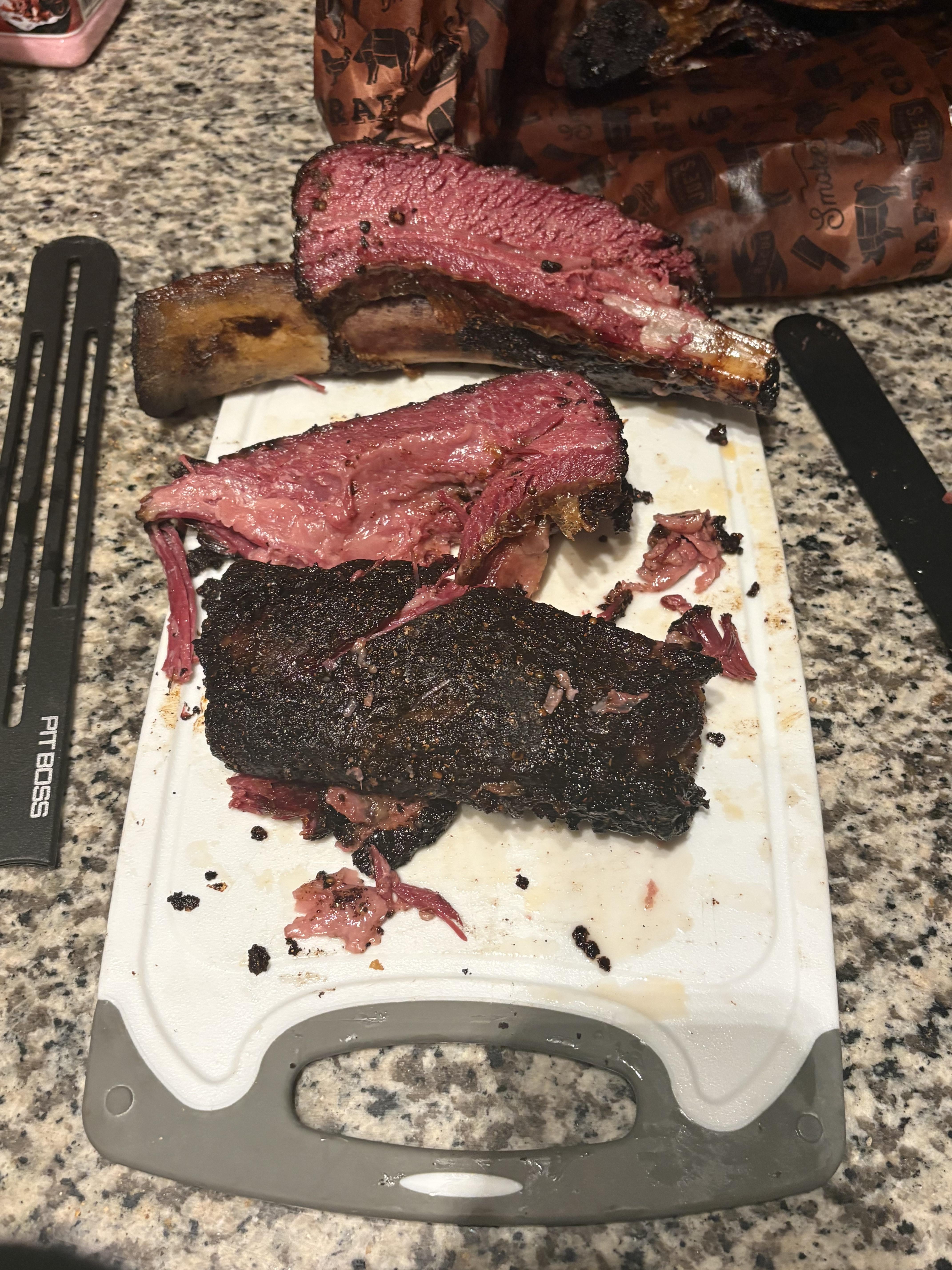 The flavors that you taste when you bite into this is insane!!! 7 pound beef short ribs brined for 11 days…used my homemade rub… went in the smoker at 1130…came off around 2230…wrapped in pink butcher paper with a tablespoon of beef tallow…rested in the cooler with a towel until it hit 150° internal…this is by far the best thing I’ve made on my smoker yet!!!