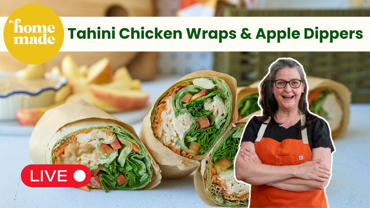 Heat. Heat. N. [Music] Hello and welcome to Homemade everybody. I’m so happy to see you. We are live on YouTube. So, if you’re watching us right now, you’re hanging out on YouTube with us. I love it. Give the homemade channel a little bit of love, like us, subscribe. Um, and then you get updates all the time whenever our classes are happening on when you’re on YouTube, which is pretty cool, right? I’m so glad you’re here. I’m Bonnie. I’m going to be your chef today in the land of Tahini world. I’m super excited to be exploring this uh tahini with you. So, we’re going to talk about that in a couple minutes. Our chef in the chat today is Remy. What’s up, Remy? What’s up? Hi, everybody. Happy to be here. Hooray. Remy’s going to be watching the chat with you today. So, um, if you have any questions as we’re going along, just throw them in there. I hear a rumor that there might be some kind of polling going on in the chat, which I think is going to be interesting. I can’t wait to hear about that. Um, today we’re partnering up with Mighty Sesame, the Mighty Sesame Company. I am super excited about this. This is my first exposure to this product and I think it’s super cool. It’s delicious. It’s super easy to use and it allows us to do some really, really fun stuff. Um, we’re going to do a tahini chicken wrap. We’re going to do a maple tahini yogurt dip. And both of these things that we’re making today are really easy to prep. They’re easy to pack. They’re loaded with flavor. They’re loaded with nutrients and wonderful textures. So, uh, I don’t know about you guys, but it’s back to school where I am. And so, this is really good for back to school. And that means back to school for the kids. That means back to school for when you want to have a nice lunch for yourself, like all things. So, that’s what we’re going to work on today. Okay. Any questions? Like I said, throw them in the chat. Remy will give them to me and I will give them back to you. And if you just want to say hi and tell me about all the awesome stuff you’ve been making, I love hearing that, too. So, have at it. All right. So, tahini lovers, this one is for you. We’re going to use this um mighty sesame uh tahini. It’s going to bring this sort of nutty depth to a savory chicken wrap. And then we’re also going to do this sweet and salty dip. Um and like I said, very very kid-friendly. So, you can do like a creamy chicken salad. You can have colorful crunchy veggies and a fun dip with apples and it’s just going to make your snack feel like a treat, which is wonderful. All right, quick and easy to assemble. Great for busy families. So, let’s get into the actual item that I’m going to showcase today. This is um the Mighty Sesame tahini. I love Mighty Sesame. Like, it’s such a great phrase for a company. Super cool. And these are awesome. These are the three different tahinis that we’re going to use today. These are cool because um they’re shelf stable. So, even after you open them, you can keep them in your cabinet. Um, which is great. They’re really easy to use because you can squeeze them out of these little bottles, right? And these three different um flavors have some variation. So, let me I’m just going to show you what they are. So, the first one I’m going to talk about is um this regular one, which means it’s got the sesame seeds already peeled. So, this might be the tahini that you’re really used to. It’s going to be lighter in color um and have a really nice texture. So shake, make sure you always shake it up because the oils in the um tah in the sesame seeds will separate out. So shake it up so it’s really well combined. This is super cool because there’s nothing in this but uh sesame seeds. So let’s just put it out here so you can kind of get a look at it. So that’s this one, right? Next up, I’m going to show you a whole seed one. So this means that the holes are still intact. So this one’s going to be a little denser, a little thicker, a little bit nuttier. This is really nice for marinades um and things like that. So, you see that difference? So, that’s that guy. And then this last one, this one is actually going to have uh two ingredients. I think it’s going to have sesame seeds and it’s going to have haresa. There’s a little bit of salt in the haresa, of course. So, here’s this guy. A little bit different. All right. So, those are your three ingredients that we’re going to use today. Um I’m probably only going to end up using the haresa and the light one. Although, we could mix them up, too. I don’t What do you think, Remy? Maybe maybe a little mix. Um, but these are your three guys. So, the textures are fairly similar. Really nice to just be able to shake them up and then squeeze them out. And then you can just give it a little taste, which I really recommend just to see what the differences are going to be. Right. Right. Very traditional sesame flavor, really extra lush, deep sesame flavor, and a little bit spicy sesame flavor. All right, let me go wash my hands and then let’s get into making some dishes out of these. And if you have any questions, too, while we’re doing this, throw them in there so I can find out what’s going on with you. I think I have a question for you. What are you making for lunch? We’re getting to that time of year. All of a sudden, you have to figure out lunches for kids. You have to figure out lunch for yourself, right? So, what are you out there making for your lunches? Throw it in the chat. Let me know because I would really love to hear what you’re cooking out there. What are you cooking, Remy? What am I cooking? Yeah, what are you cooking? Oh. Oh, I’m on the spot. Let me think. Um, I’ll get back to you. Okay. Yeah, when you’re not here eating lunch at home. Okay. Very good. All right. So, um, how about this? Uh, oh, I will say we had a great conversation here