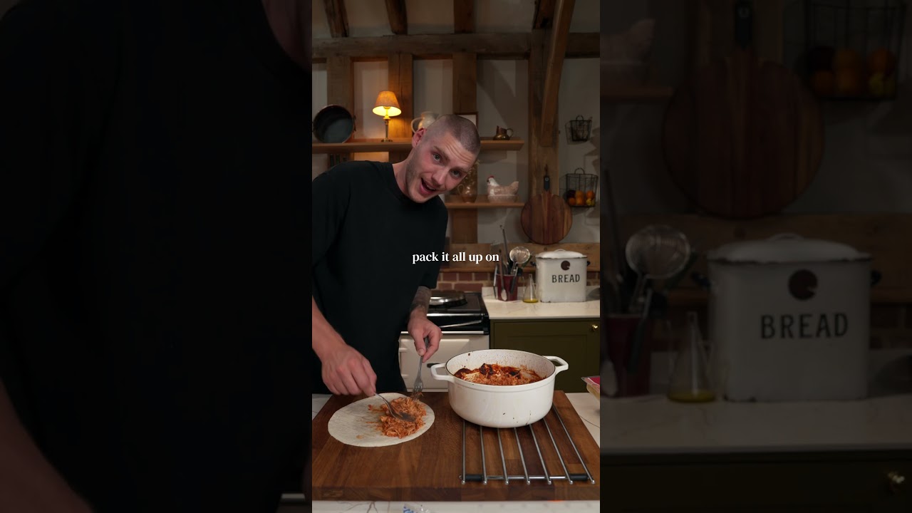 Right, if you can’t be bothered to cook, but you want a good, tasty, healthy meal with minimal effort. We get plenty of chicken breast into a big pot. And then we just want to start building loads of flavors. I’m going to make a really easy barbecue sauce. Starts with ketchup and tomato puree. We make it nice and sweet with brown sugar. You want some apple cider vinegar in there. Season it up with garlic, bit of smoked paprika, pinch salty flavors, and pepper. Then mix it up. Lid on. Then we’ll literally just bang it in the oven and forget about it for like two hours longer if you want. Just let it get fit and flavory out. Lid off or y forks. Pull it all apart. It should just fall apart with the forks. If it’s not going longer, we’ll go wrap down. Chicken down. Pack it all up on one side. Got a jar of roasted red peppers. So, I’m going to stick that on as well. But you could just go straight with cheese. Any cheese will work, right? I’m using emmon tile, but cheddar, mozzarella, whatever you want. Fold it. We’ll bang a pan on the heat. Little bit of oil. And we’ll just lay this down. Flip. And then just repeat your way through them all. These are so easy, right? We’re going to chop them into like three. And that is dinner sorted, mate. I didn’t grow up with food like this. I grew up with freezer food, bang in the oven, and on the plate. And that’s why I started the Salty Flavors Club. I’ve got hundreds of my recipes exactly like this. Super simple. 6,000 people are enjoying it every single day. It is basically the cheat code for cooking from scratch at home in like 20 30 minutes or slow cook like this. Everyone should be able to cook from scratch. There’s a free trial on now. Go and try it out. I’m sure you’ll stay cuz everyone else does. Now, get me involved. That is bang on. Serve it with a nice little side salad or something. Bit of mayo, maybe. Bit of yogurt. Now, crack on. I’m going to go and feed the family. Drop us a follow and of course I’ll see you in the next one. Love you.