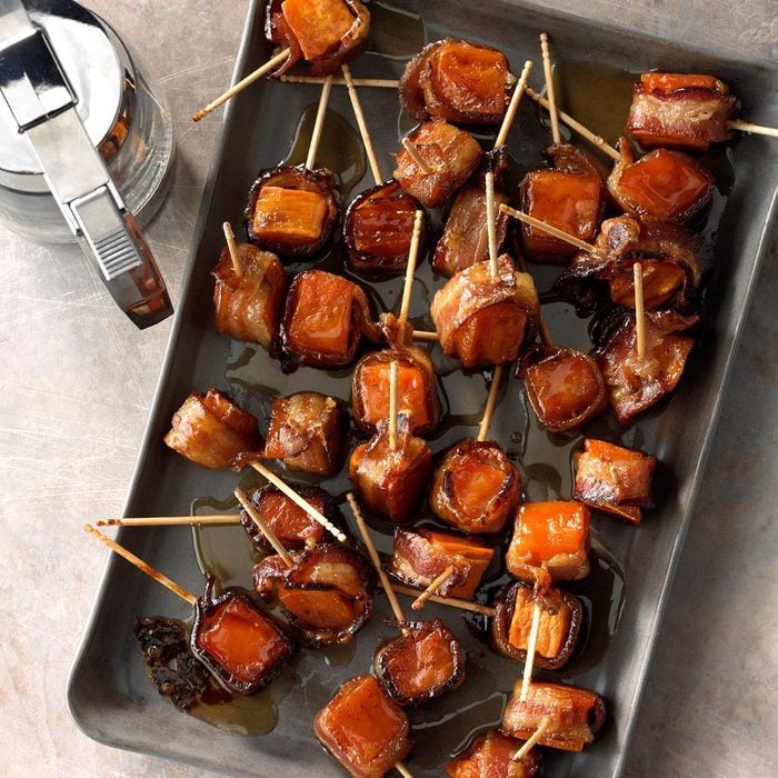 After making little bacon-wrapped sausages for years, I needed a change! I had an extra sweet potato and half a package of bacon on hand, so I put on my thinking cap and came up with this treat. —Kelly Williams, Forked River, New Jersey