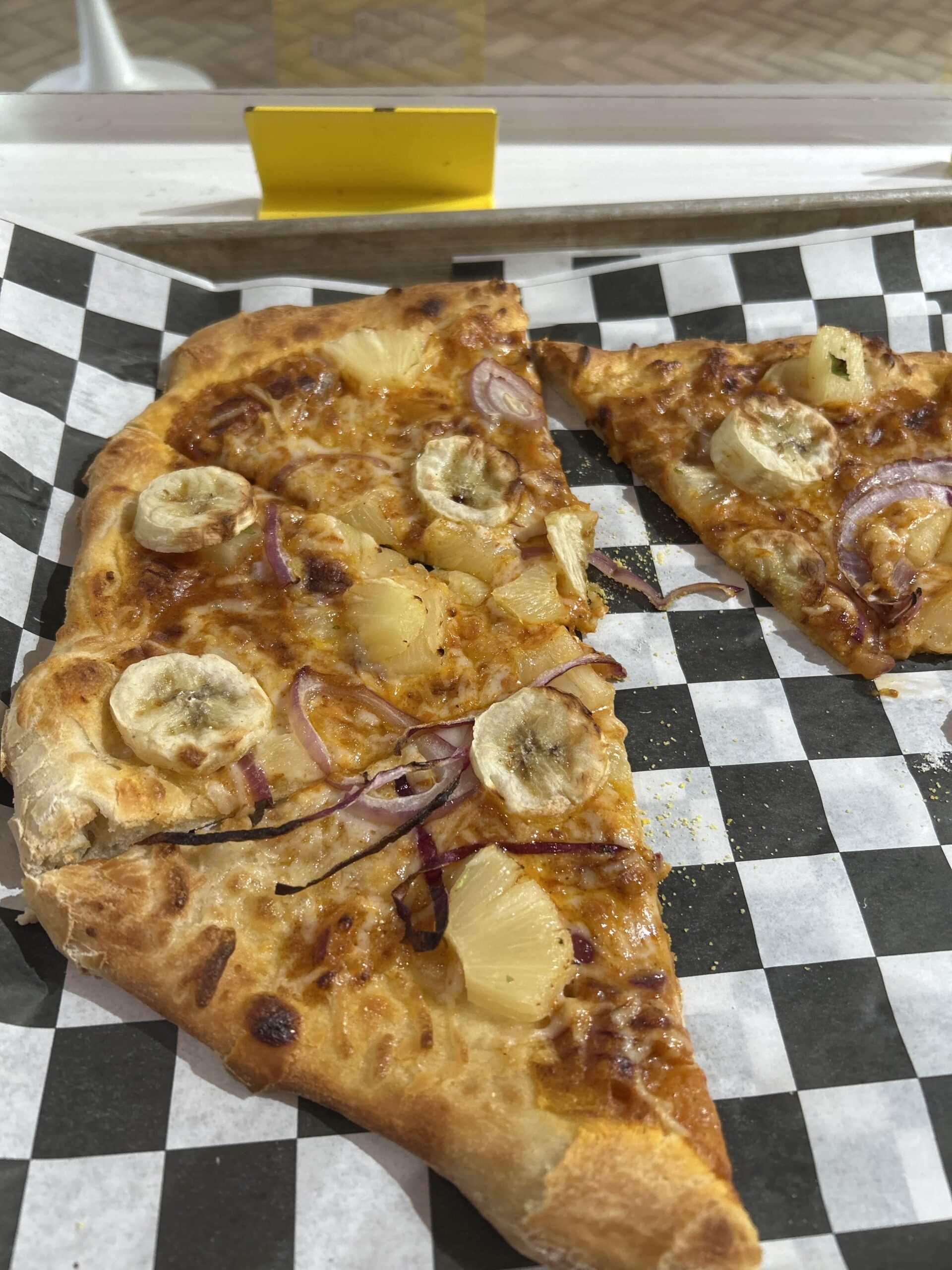 I grew up having banana (in milk) as a side dish for curry, but on pizza?? Madness