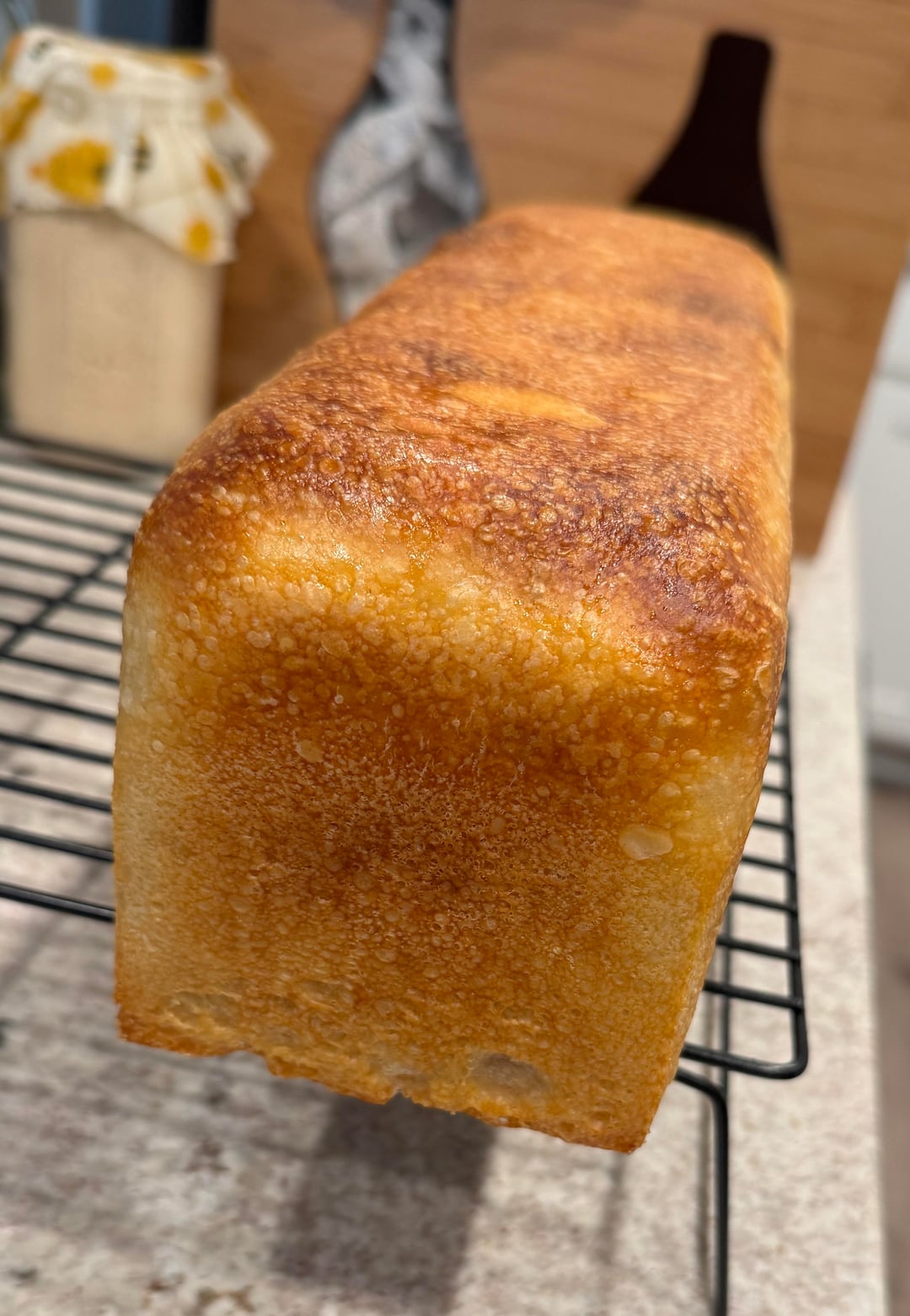 I think it came out pretty good. My husband is thrilled to have “sandwich shaped” bread. 😂