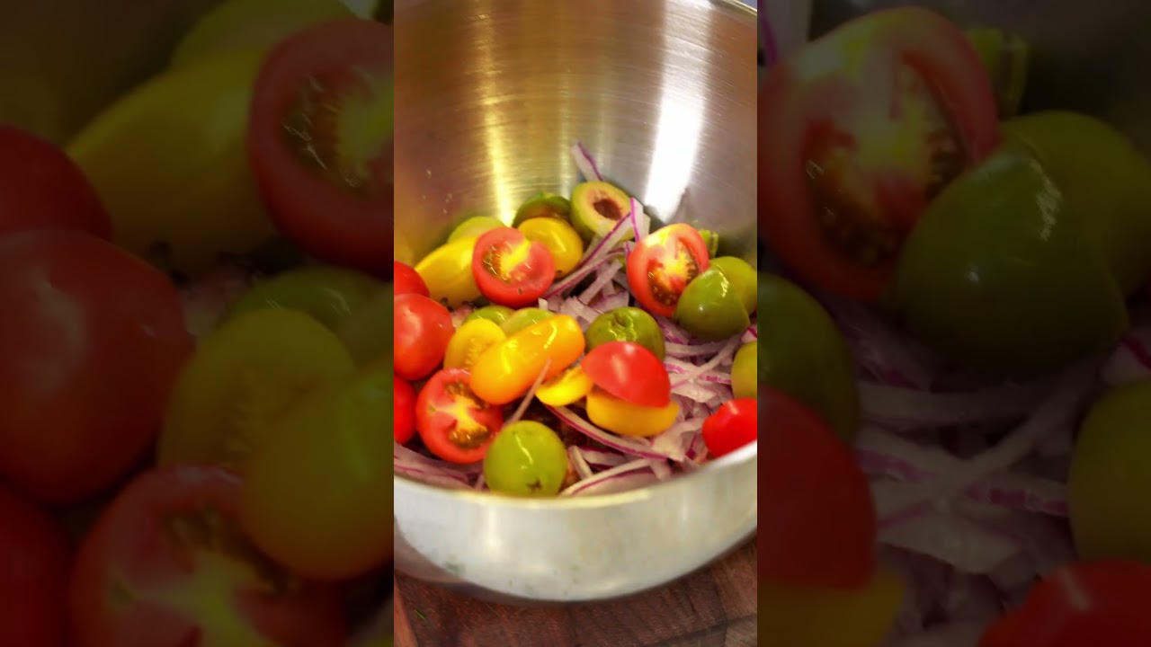 All right, guys. This to me is the perfect way to enjoy octopus on a beautiful sunny day. This is grilled alundra octopus that’s been tossed with some fresh ingredients picked right from our garden. Okay, so the first thing we’re going to do for this salad is I’m going to make a nice base of a rich Greek yogurt sauce. Uh it’s going to be simple. It’s going to be light. Uh but it’s going to really bring the entire salad together. I’m going to take some fresh dill that we just picked from the garden. I’m going to give it a really nice chunk. Half a lemon. Squeeze all of that in there. and some sea salt. [Music] Here we have grilled octopus. This is alome octopus that we just pulled out of the grill. Here I have some red onions. These red onions I thinly cut and I rinse them under cold water. What that does, it kind of just takes a bit of the edge off that kind of intense abrasiveness of the onion and keeps it nice and sweet. Next, I have these beautiful Castella Vron olives. These are my favorite. They’re not really too briny or salty, but they have a ton of flavor. Next, I have these beautiful little cherry tomatoes. Again, I’m going to keep them in half. I want some of those juices to come out and kind of help with the vinegarette. Again, I don’t want to cut them too much smaller because I’ll lose the integrity of the tomato. Lastly, I’m going to use a good quality feta. And, you know, I’m going to cut them in small little squares, maybe a little smaller than the other ingredients because, like I said, it’s a little bit more intense. Got that saltiness to it. [Music] First thing we’re going to do, we’re going to take that yogurt sauce we made earlier. We’re going to put it all around the base of the salad. And then we’re going to give our salad a nice stir. Again, when you stir it, kind of go gentle with it. You don’t want to break anything up. Like I said, we want the ingredients to be as whole as possible. Important for me for the salad that that octopus gets a nice char. It’s really going to bring an extra layer of grilled smoky flavor that otherwise uh your salad might be losing a little bit of complexity. So, make sure when you grill that octopus, get a nice char on it.