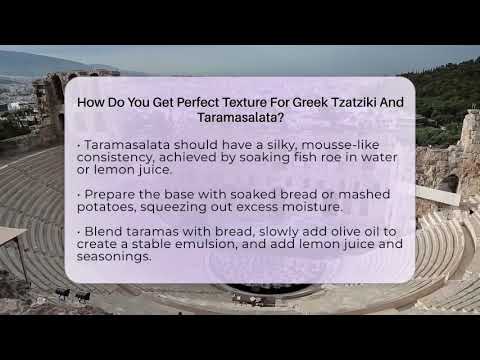 How Do You Get Perfect Texture For Greek Tzatziki And Taramasalata? Have you ever wondered how to achieve the perfect texture for Greek meze dips like tzatziki and taramasalata? In this informative video, we’ll explain everything you need to know about preparing these classic Greek dishes with the ideal consistency. We’ll start by sharing tips on selecting the best ingredients, such as high-quality Greek yogurt and fresh cucumbers, to ensure your dips are rich and creamy. You’ll learn how to properly prepare cucumbers by grating and removing excess moisture, which helps prevent watery dips. We’ll also cover the importance of resting time for flavors to meld and textures to set. For taramasalata, discover the process of softening cured fish roe and creating a smooth, mousse-like consistency by blending with bread or potatoes and adding olive oil gradually for a stable emulsion. We’ll show you how to achieve a silky, spreadable dip perfect for serving with bread or vegetables. When made with care and attention to detail, these dips highlight Greek culinary traditions and simple techniques that emphasize fresh ingredients and proper mixing. Whether you’re a home cook or a culinary enthusiast, understanding these methods will help you create authentic, delicious meze. Join us to learn the secrets behind perfect Greek dips and subscribe for more cooking tips and recipes.