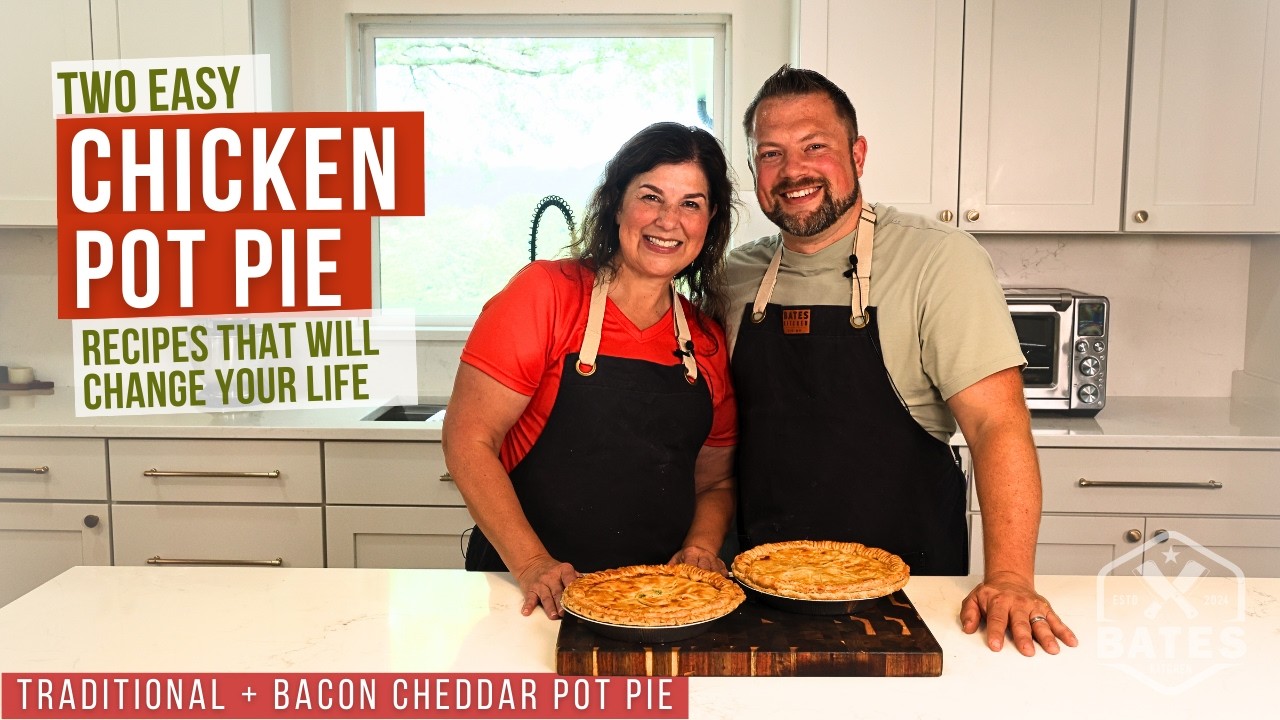 Welcome back to the Bates Kitchen. We have true Americana comfort food right here. Chicken pot pie. And we have it two ways. I should actually slide this around. I’m going to give you this one with the vegetables. And then one that us picky kids forced mom to create that is our own little chicken bacon potato combination with some cheddar cheese in there. Both of these are amazing. If you love chicken pot pie, I can’t wait for you to see the rest of this episode. So, what do I need? Okay, so there’s a couple of different ways. I think we talked ahead. We’re going to do the kids most favorite pot pie. I’m going to do them both. We’re going to do both. Okay. So, we need bacon, potatoes, and cheese for the filling of the pot pie that the kids. So, we’re going to start out probably and just cook our bacon in the oven. So, it’ll be fast. Don’t you think that’s the fast way? Absolutely. And um and we’ll prepare like our mixture and our crust is already pre pre-made. got the prepackaged crust you sent me. And so then if you want a veggie pot pie, we’ll just need frozen veggies or canned veggies or we’ll need Here’s what I want. I want your traditional chicken pot pie. Okay. So I want the traditional one that you always made growing up and then I want the one that we actually like the bacon and potato. You always made a chicken with vegetable pot pie for your dad cuz he loves the classic. He loves vegetable soup, vegetable soup, pot pie. So let’s do that one first. Yes. But for the kids, they were picky eaters. Chicken, potatoes, bacon, and cheese. It was more like your, you know, I don’t know, gourmet style, you know, not gourmet. I don’t know what you call it. I don’t know what you call it. Just good food. We liked it. It was good. Okay. Minus the veggies. So, let’s get out. Is your chicken pre-boiled and ready? Okay. So, we’ll start our chicken bowling first cuz it’ll take the longest. It won’t take long, but it’ll take the longest. And then we’ll start our bacon cooking. That’s the two longest things about this recipe is cooking your chicken and cooking your bacon. Now, if I’m doing the veggie chicken pot pie, some cheese, the veggie chicken pot pie does not have any bacon in it. I just started adding this to the meat one just to give it a little ump, you know. Yeah. So, this is good. Let’s start with this. And then we’ll do We don’t need the pie crust yet. We don’t need the pie crust yet. I have never done bacon like this, so I’m I’m going to learn this. No, Alyssa was the first person I ever saw cook bacon this way. She’s got a lot of kids and so she does things fast and efficient and it really is good. Isaiah cooks ours this way. I’m still oldfashioned, so I still fry mine most of the time. But this is if you’re in a hurry like we are today. It is a fast way. You can Google it. There’s some people say cook it on 400 for 20 minutes or however long. Some say 425. Um, Isaiah’s been doing 425 for around 20 minutes and checking it. He turns his halfway. I think Alyssa does. I can’t remember. She’s the one that first taught me. But let’s try preheating the oven to 425. We’ll turn it at about the 10 or 12 minute mark. Flip it back in and check it. And it is one pan enough bacon. We’re just going to crumble the bacon in each pie. So, yeah, we don’t need a whole whole lot of bacon. Okay. Unless we just want to sit here and munch on it. I love me some good bacon. Now, I love to cook bacon on my on my stove. I love I notic you’ve got really thick cut bacon. So, we might have to watch our time. I don’t know if that changes. Let’s do 400 then. That way, it makes sure it cooks. It doesn’t burn on the outside. Well, I didn’t like Yeah, I like that. That’s all I can fit on here. Let me show you. Scoot these little babies over. You can also rip off the pan. Oh, you’re right. But I still think I can squeeze one. This is what happens when you got 19 kids. You just try to squeeze in every every little bite of goodness that you can squeeze in. Make sure it’s all nothing hanging over there. There we go. I’ll cook the second batch if I need it. All right. All right. So, next we want to boil our chicken. Okay. I’m going just set this over on the stove for now. You’re the king at boiling chicken. You know all the time. So, tell the people how long it takes to boil that chicken cuz I always just stick a fork in it till it’s tender. But you’ve got everything all time. I just use I just use a thermometer to make it easy. You use a thermometer. See, I never had one of those fancy things. All right, where’s my scissors? Oh, sorry. I was cleaning up. You know me. I’m Dad says I move people’s plates before they finish eating. I actually got you something. The last time we were doing chicken, I didn’t have my shears. And these are so comfortable. They’re so much more comfortable than regular scissors. So, I got you a set of them. No, you didn’t. These are the best I’ve ever found. I love these. They’re so comfortable with your hand. I’m going to let you do these. Wide handles. That is when you get stuck in there. The best clicking ones ever. cannot. If somebody asked me the most important thing to me in a kitchen, I would definitely say scissors. I don’t use mine as much as you do, but I hate when I don’t have mine. I can’t live without them. I had a grandbaby I was babysitting for the other day and you know, we had some hot dogs and I use them to cut the hot dogs. I use them to cut the pizza. I use it to cut my veggies when I’m going to fry. You’re going to love these. When I’m going to fry peppers, I cut my pepper strips. I use it for everything. I love it. So, here you go. I got them washed and clean and ready to cut some chicken. Love that. All right. You know me, I cut out all the little things. So, I like to cut my chicken in strips just because it boils faster. You don’t h