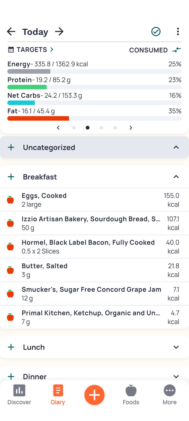 Me. I just don’t add fat or use very minimal amounts to other things tbh. Example – I air fry most of my food and won’t add additional oil to it. That being said, I prefer a fat over a carb because I get migraines. Ex with your meal – I would skip the toast and add some avocado or cheese and more whole fruit instead. And salami instead of bacon ahha