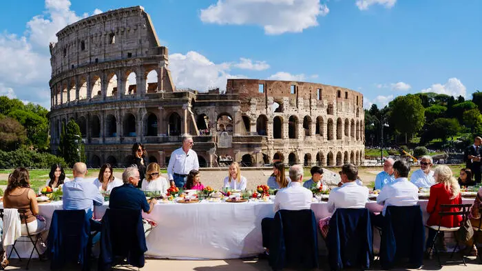 For the occasion, the prime minister attended an outdoor dinner at the Temple of Venus, facing the Colosseum, along with other guests, including Agriculture Minister Francesco Lollobrigida, Culture Minister Alessandro Giuli, Rome Mayor Roberto Gualtieri, and Lazio Region President Francesco Rocca. “Italian cuisine is worth around €250 billion worldwide,” Meloni emphasized. Responding to a question from Mara Venier, she said, “I usually spent Sunday lunch with my maternal grandparents,” a memory “linked to pastries, including the diplomat.”