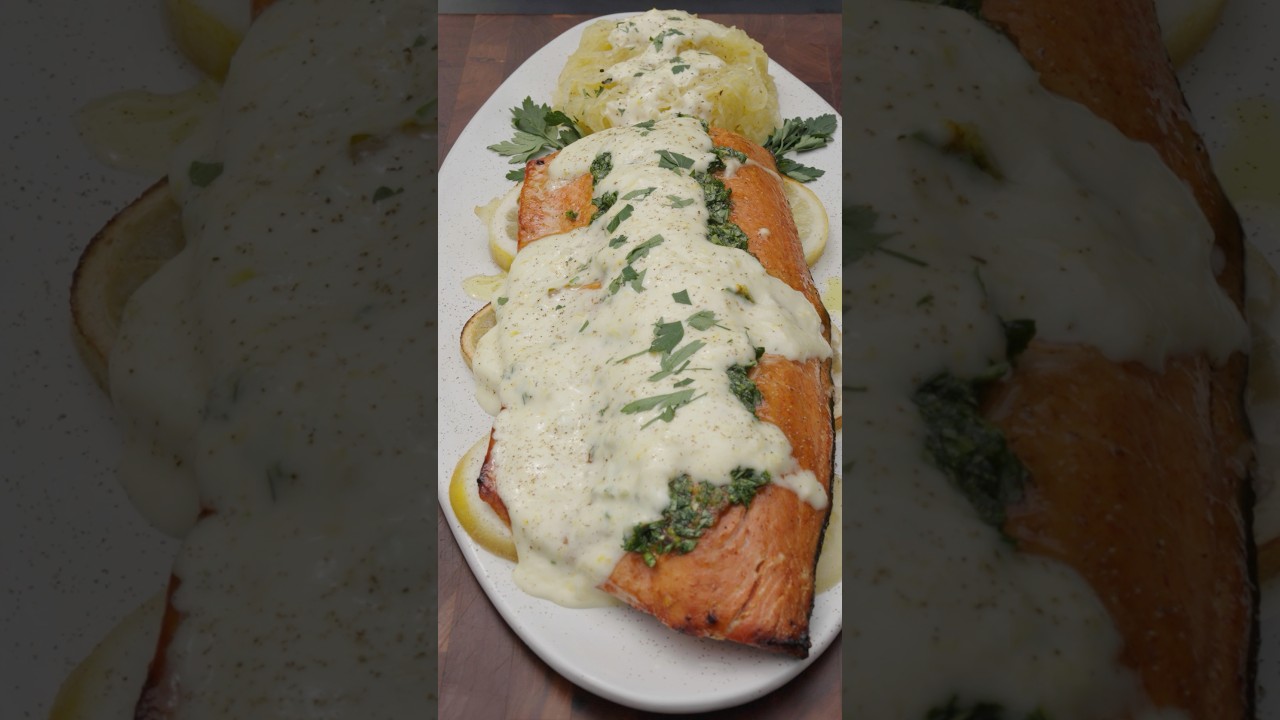 Grilled salmon with lemon herb gralada and lemon garlic ioli squash on the big green egg. Half the spaghetti squash and scoop out the seeds. Add olive oil, salt and pepper and onto the grill. Layer lemon on cedar plank and place our salmon. Olive oil, honey, smoked paprika, dijon mustard, and give it a mix. Fresh our glaze and onto the big green egg. Our lemon garlic ioli. We’ll start with some mayo, lemon zest, lemon juice, fresh garlic, dash of salt, and give it a mix. A lemon herb grammalada, fresh parsley, lemon zest, fresh garlic with a dash of salt. Add olive oil and give it a mix. Shred our squash, add grammalada, our aioli, and we are ready to eat.