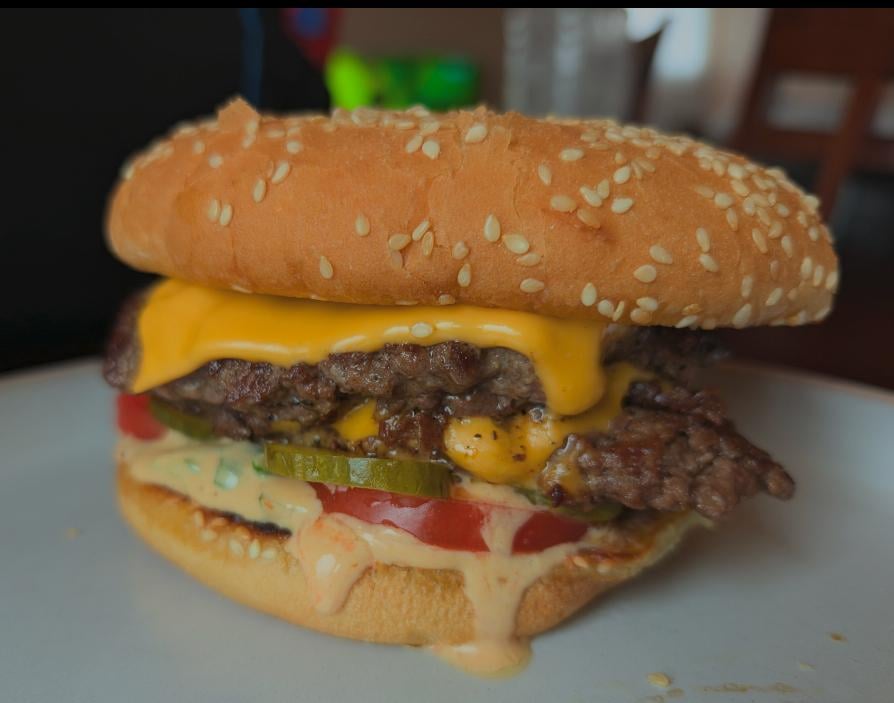 A double cheeseburger, my best one so far.by hiato6 7 Comments randsroo 3 weeks ago I certainly wouldn’t complain! 😋 Tame_Gregala 3 weeks ago When you can’t afford Rent! Now I know why lol! MagazineDelicious151 3 weeks ago Looks 🔥 Ok_Macaroon5452 3 weeks ago Looks delicious! Mobile_Aioli_6252 3 weeks ago Looks delicious 🤤 ActUnfair5199 3 weeks ago I would have to put all the toppings on the top but id eat that. Toppings on the bottom drive me nuts. PreviousAd2746 3 weeks ago Respectfully, you gotta step your game up, bro.