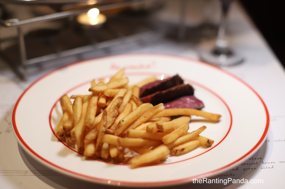 The Food A very straightforward and brainless menu where the restaurant offers a standard set menu at S$68++ per person which essentially gets you salad, steak, and unlimited fries. Once seated, you simply need to let the staff know how you like your steak to be cooked, and the meal begins thereafter.