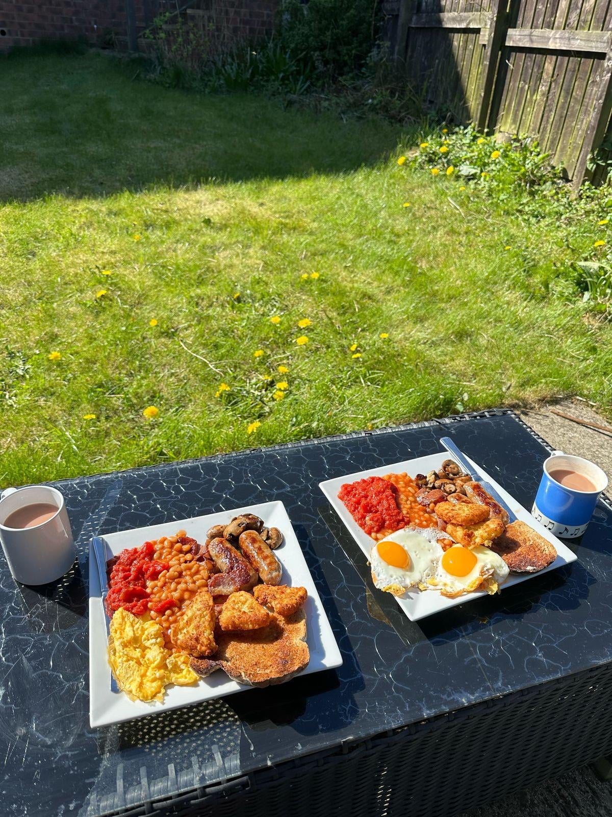 I’m a Brazilian and absolutely LOVE a fry-up, so my very British boyfriend made me one for my birthday. I did ask for scrambled instead of fried eggs, but oh well. Hope you can zoom in since the picture was taken from afar! Cheers guys, love this sub 🙂