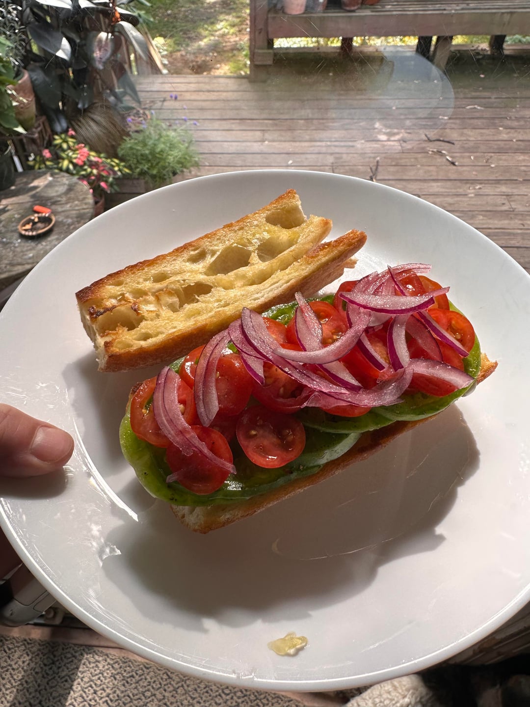 Fresh baguette toasted with evoo, mayo, garden tomato’s, maldon smoked sea salt, pepper, red onion.by MAGNIF1CNT 1 Comment readminster 2 months ago nothing beats garden veggies so luckyy