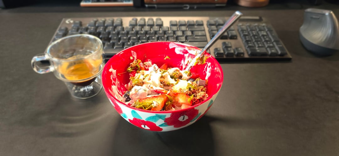 Used to make a bacon, egg and cheese on an English muffin every morning. Replaced it with Greek yogurt and fruit. Slightly less protein, but about half the calories. by papayakob Dining and Cooking