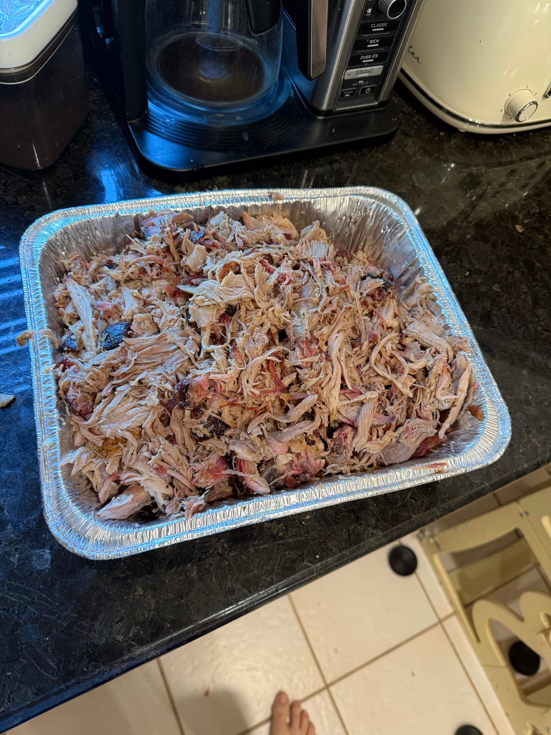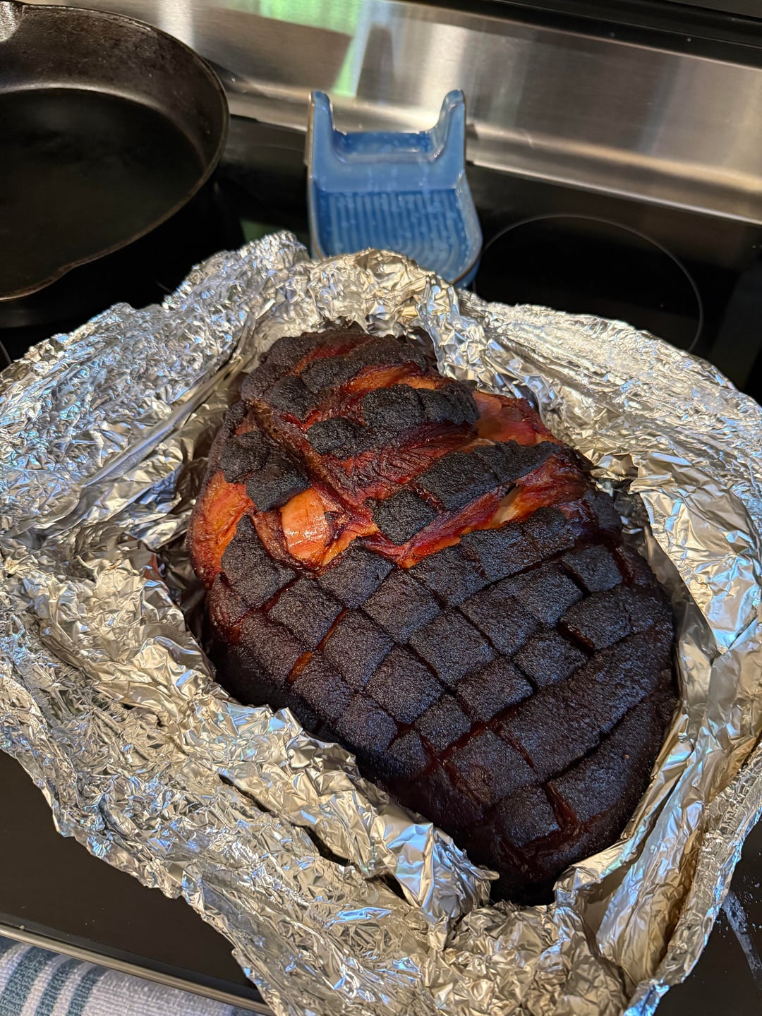 250 overnight, cranked to about 310 in the am, foil boat at about 170IT. Pulled and rested in time for a nice Sunday lunch.