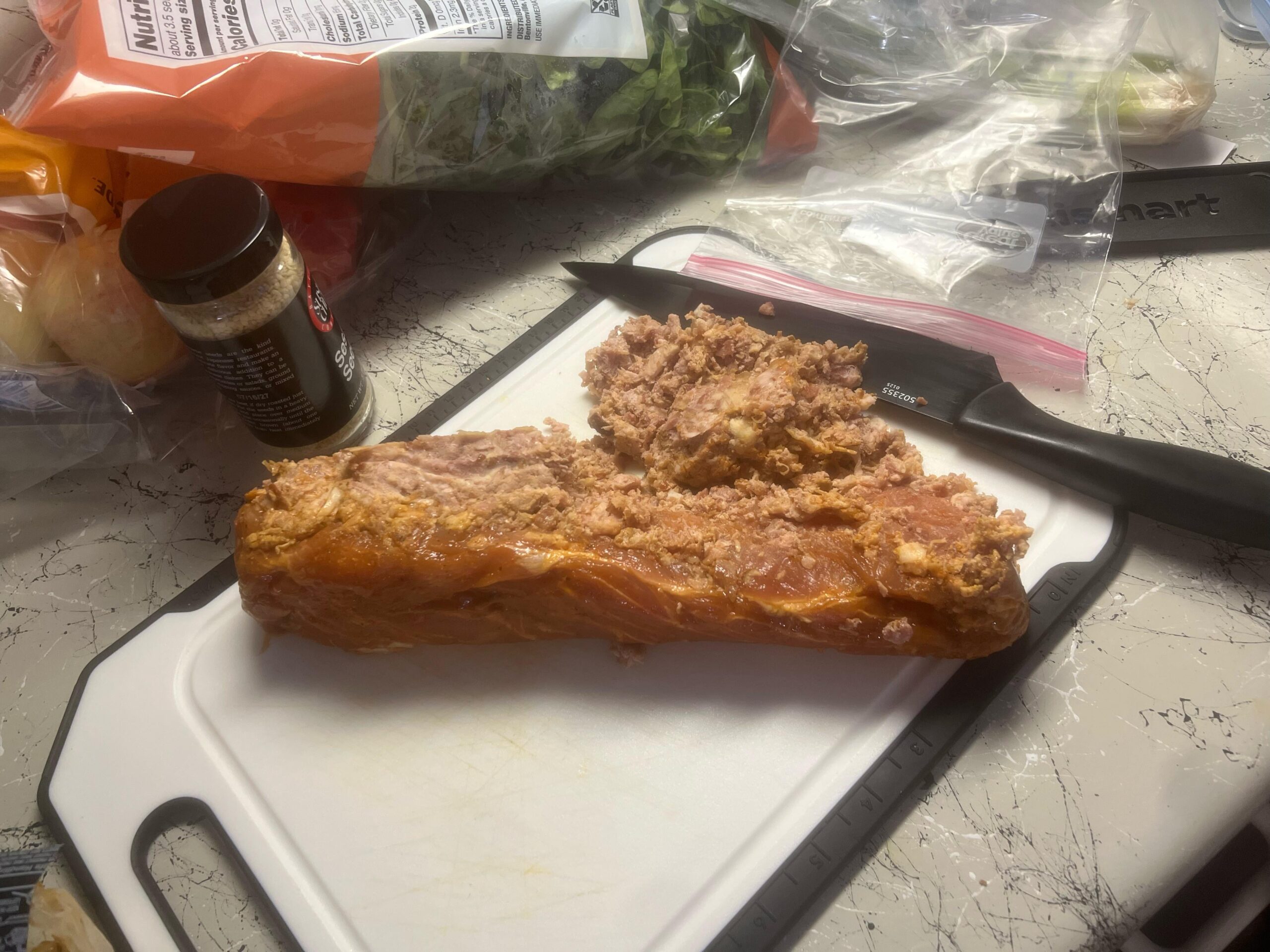 urwifesatowelmate 6 months ago Look at the packaging, did you you buy a bacon “crusted” tenderloin or something of the sort?