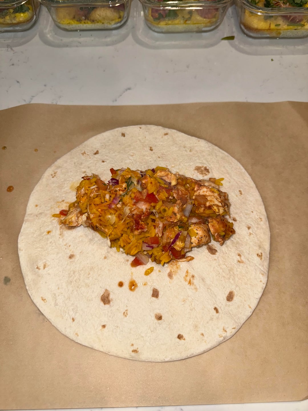 - Burritos are kept in the freezer. Everything else that I prepare in the containers are kept in the fridge.