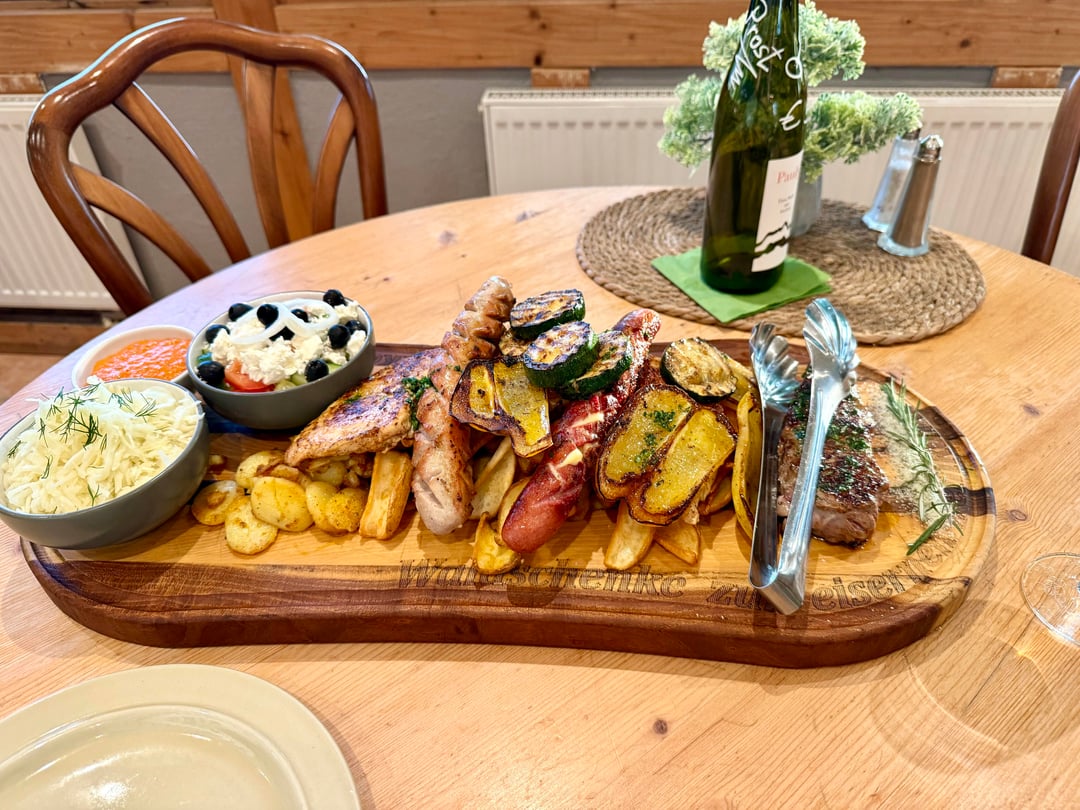 Waldschenke: German BBQ (think grilled meats) restaurant up in the vineyards between Bernkastel and Graach had an awesome view and the chef’s grilled platter for 2 people was to die for. Sausages, potatoes, steak, veggies—everything was perfect. Went down super easy with a house white.