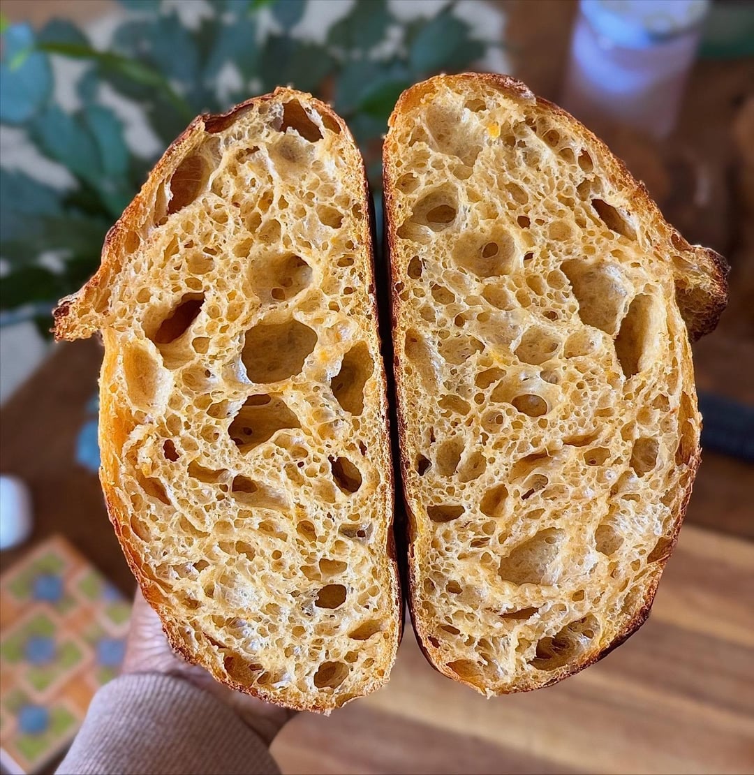 My laciest crumb to date I think! Lots went wrong during the dough prep but still came together.