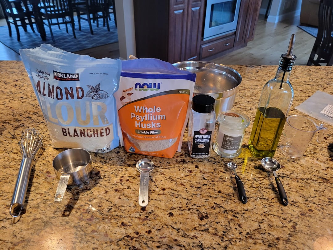 The favorite is the keto tortilla or roti. I tend to make 16 at a time (double-batch), which gives me 8 meals typically. I keep them frozen and pull them out about 30-60 minutes before I want them. They are durable, flexible, and have a nice chewy texture. Pro tip, add Everything Bagel Seasoning.