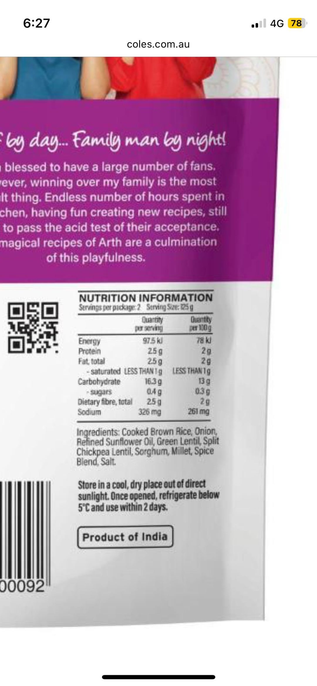 I think it could be right if the package is small. That’s 160cals for the whole package, and single ricearoni cups, for example, are 200 cals. Seems possible.