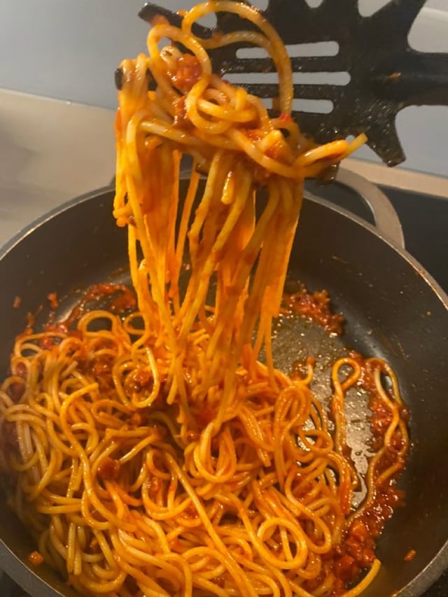 2. Let the onion sauté in olive oil on medium-low heat for 10 min before adding garlic and tomato paste. Toast the tomato paste before deglazing with some white wine.