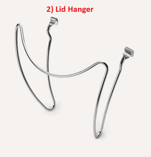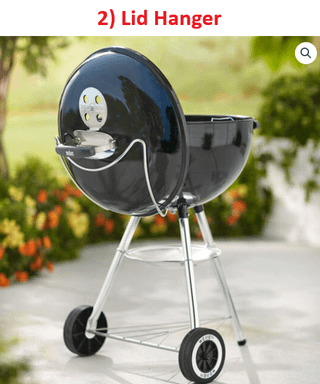 2) Lid hanger – Simply hangs on the edge and hold lid https://www.weber.com/US/en/parts–et–support/replacement-parts/charcoal-parts/8411.html