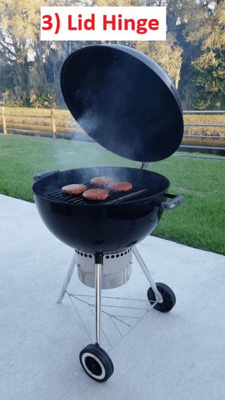 3) Lid hinge – Creates a hinged lid https://bbqsmokermods.com/weber-kettle-lid-hinge-unknown-bbq.html